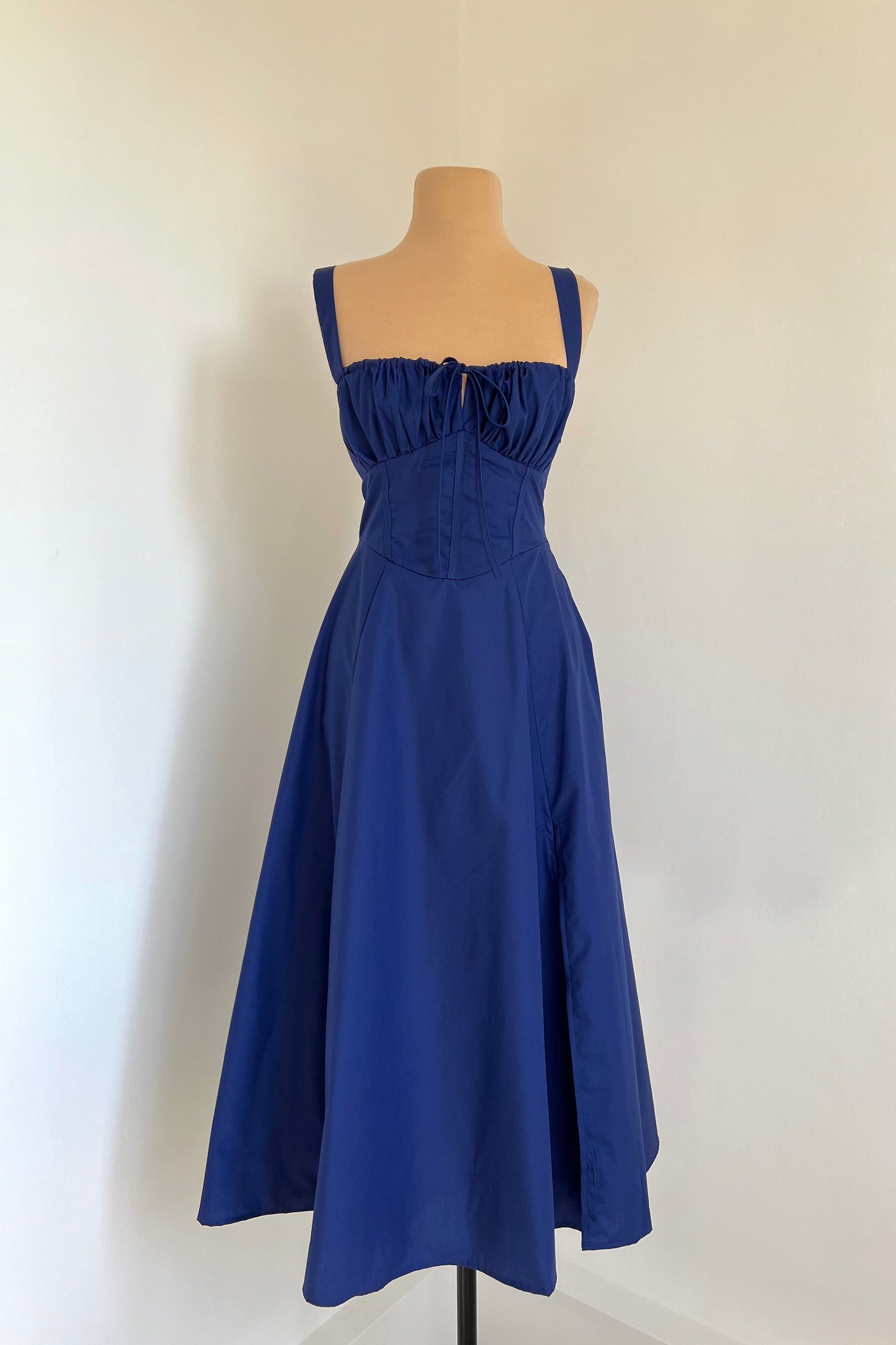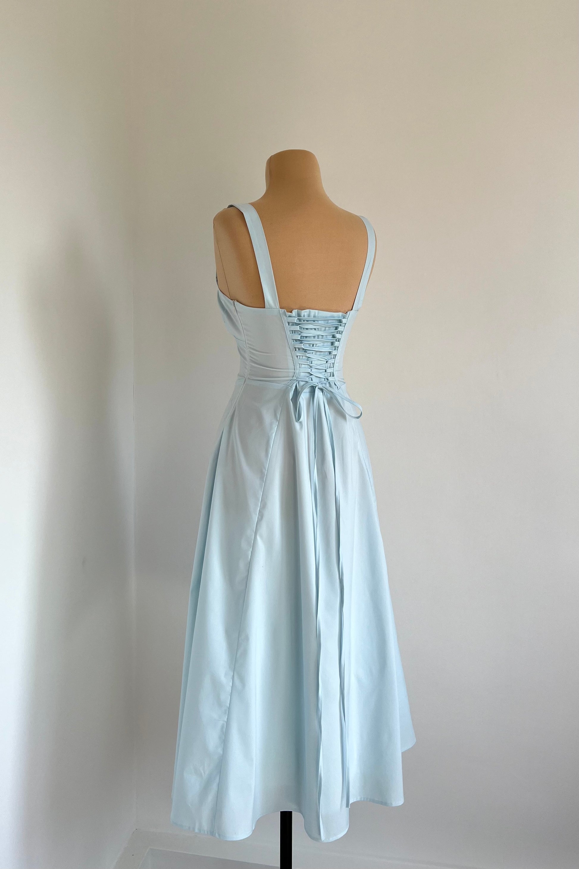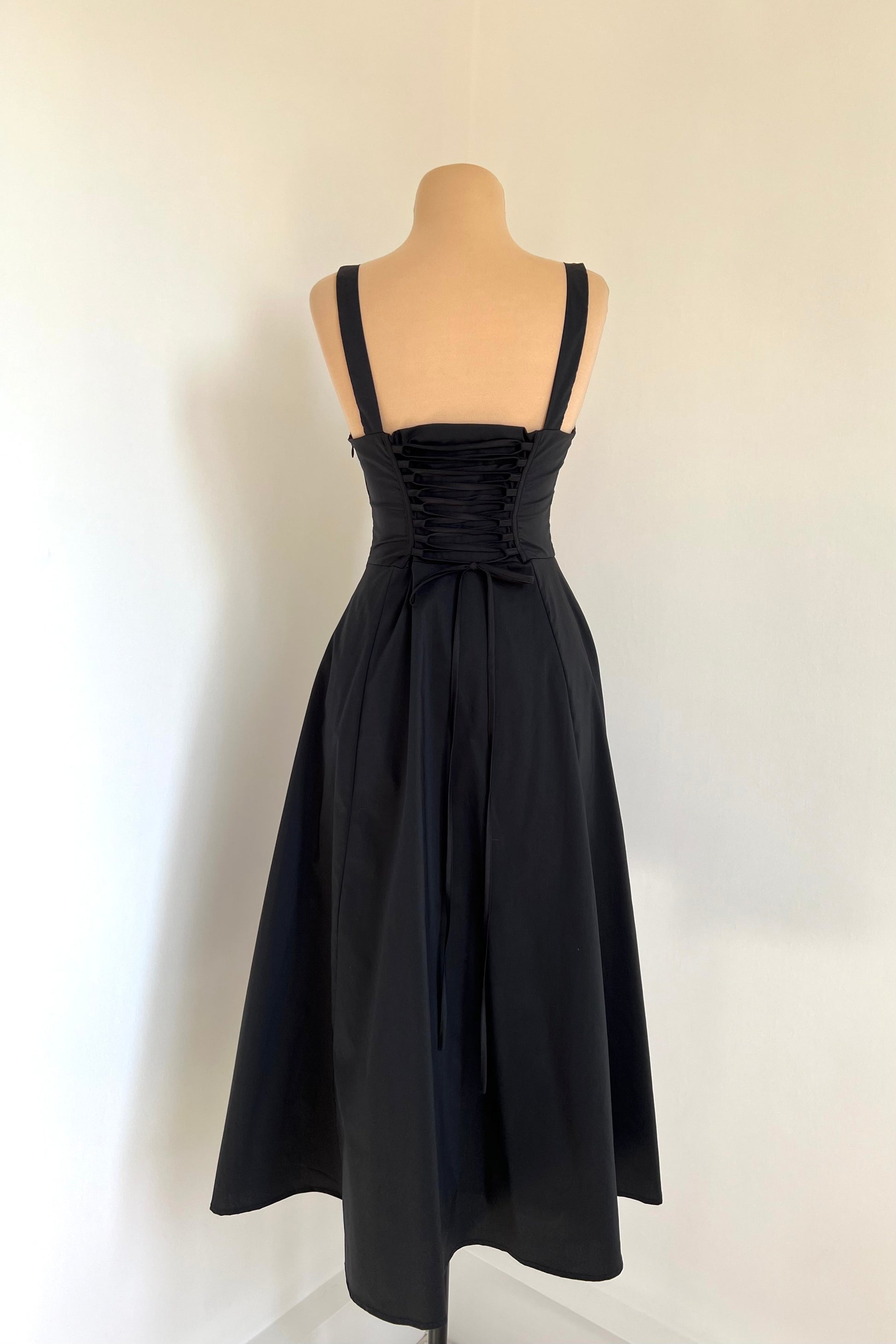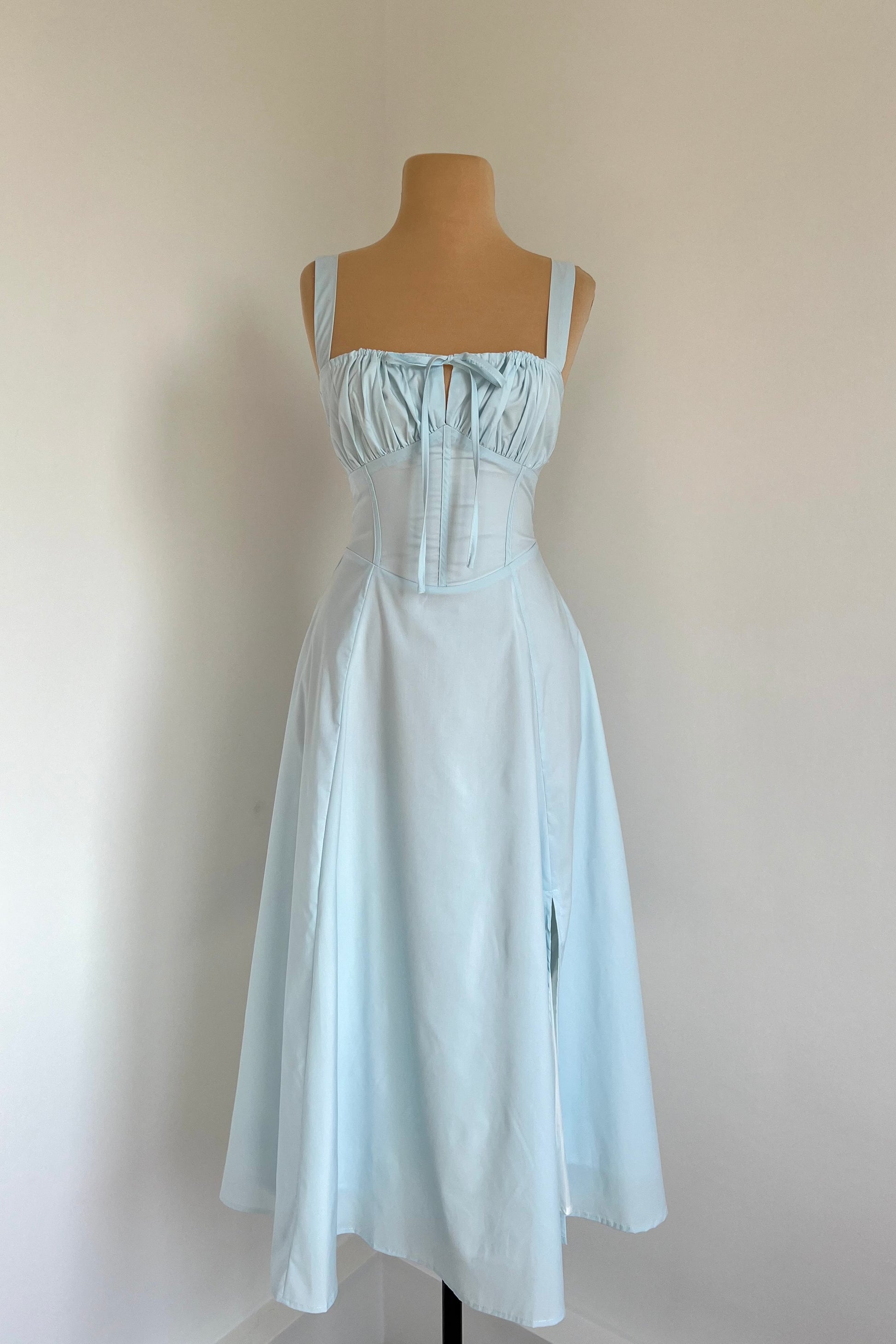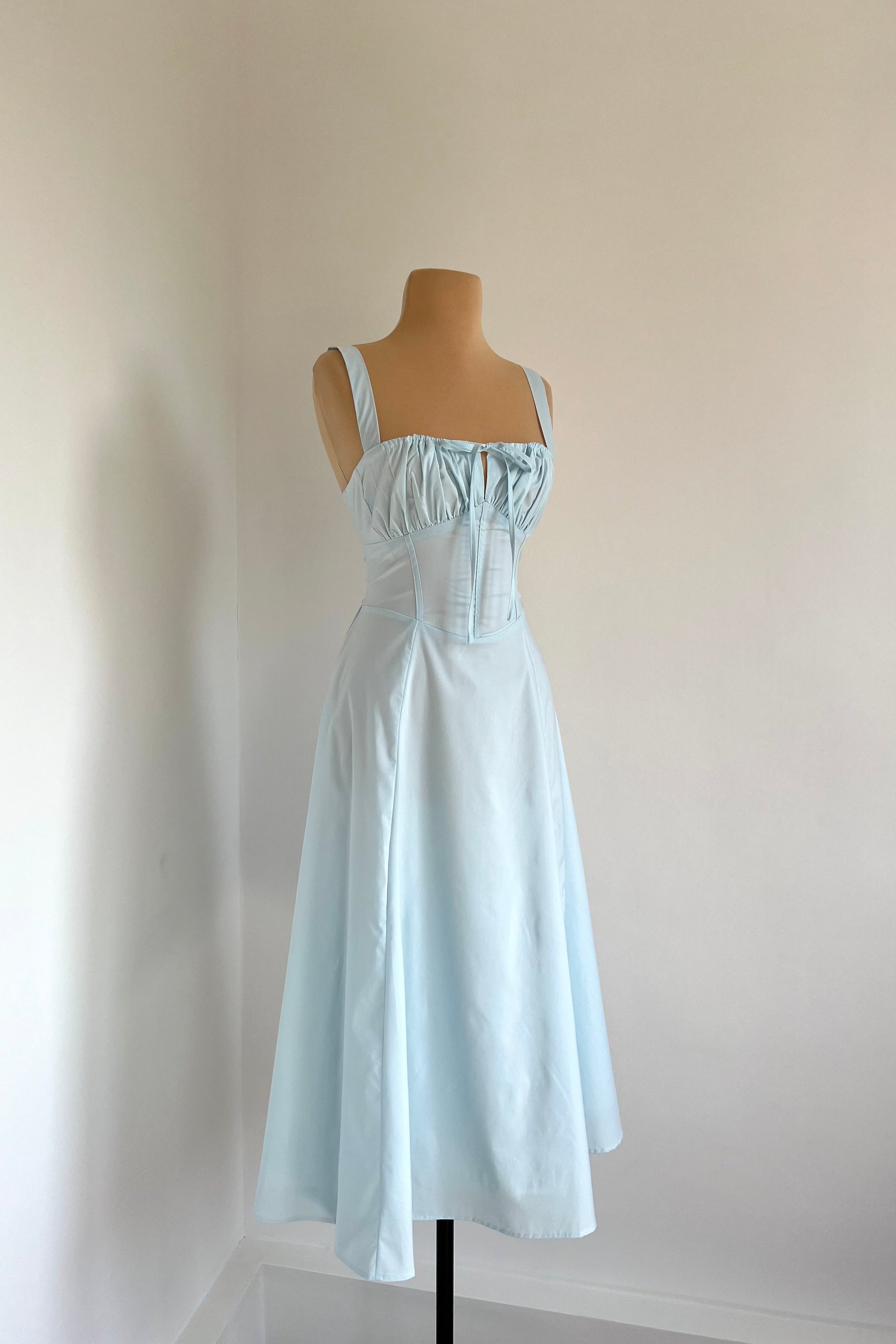 Midi dress with a corset and an adjustable chest detail.