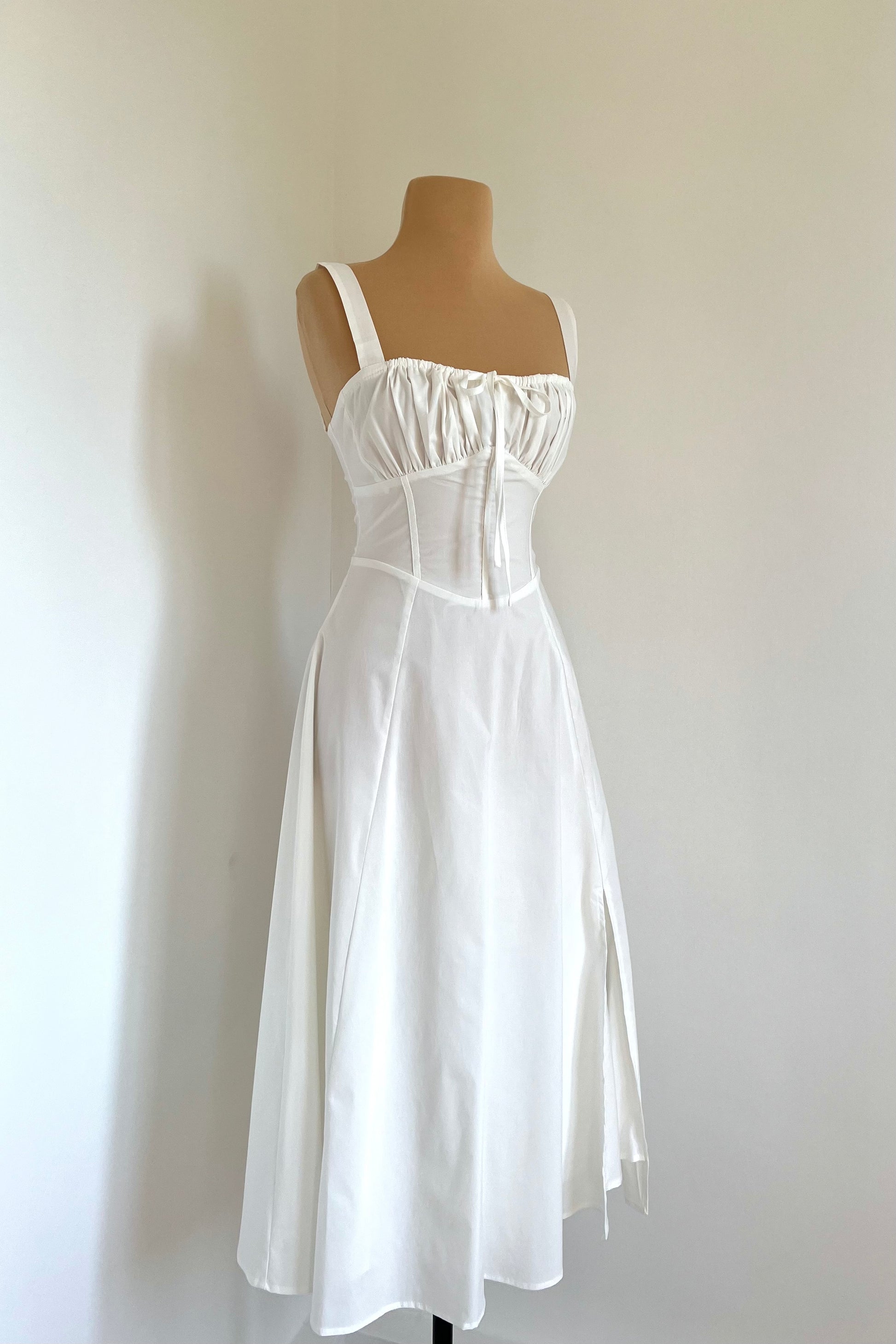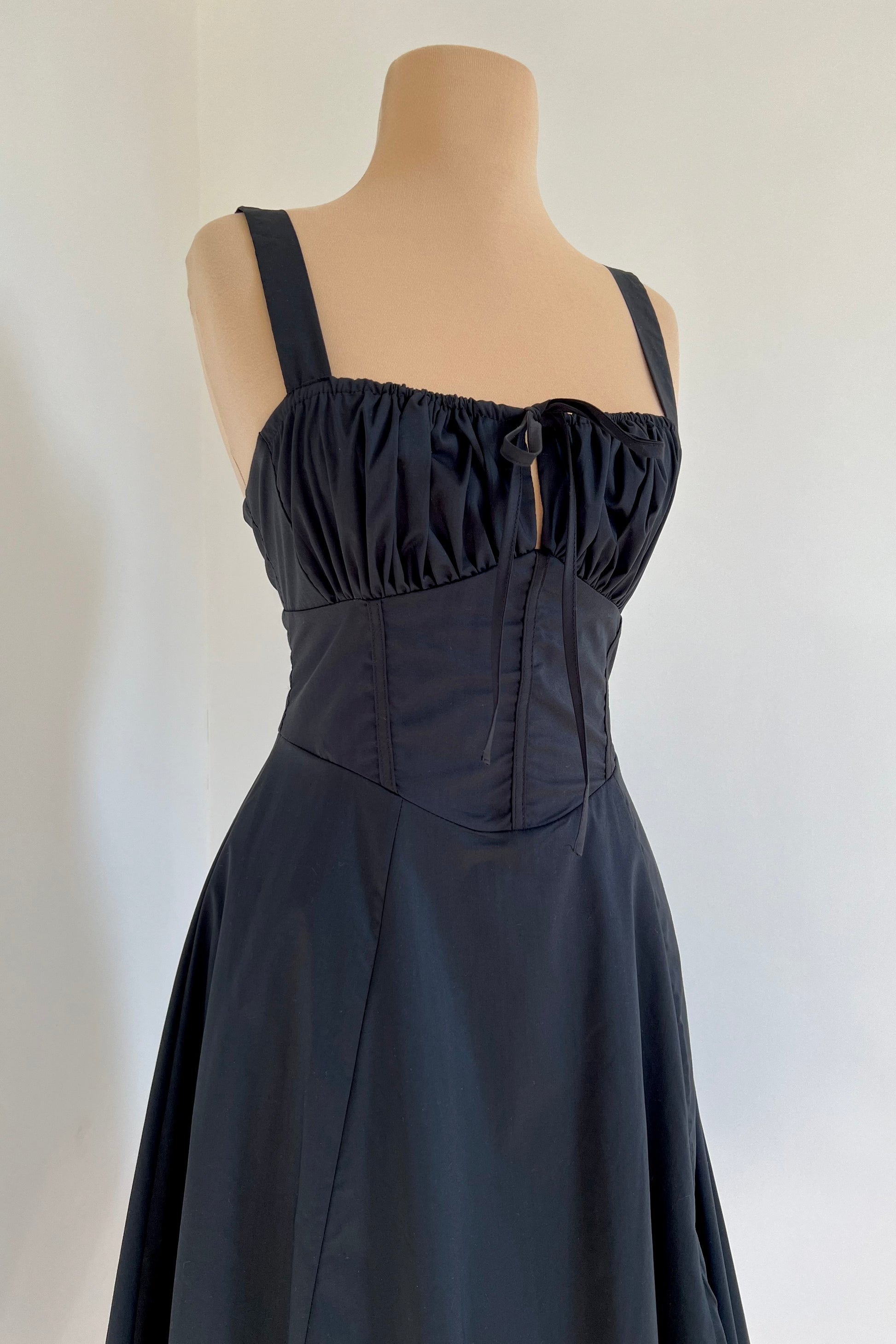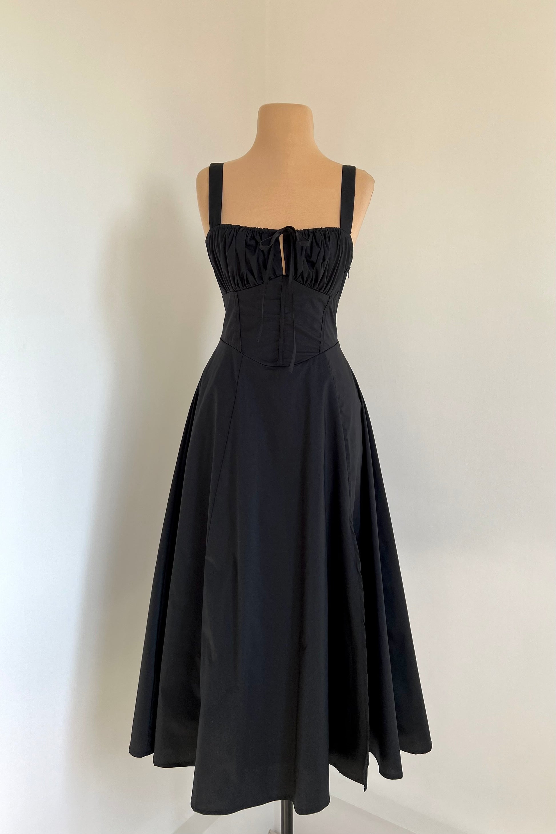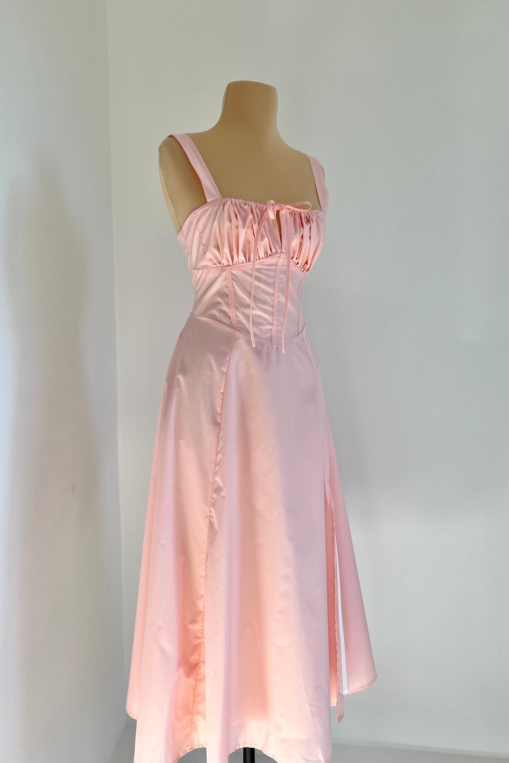 Midi dress with a corset and an adjustable chest detail.