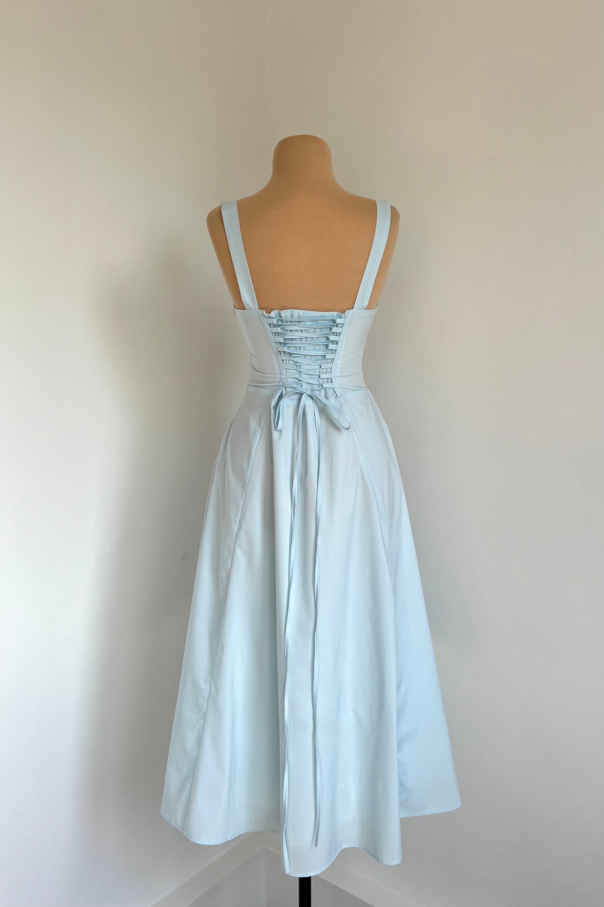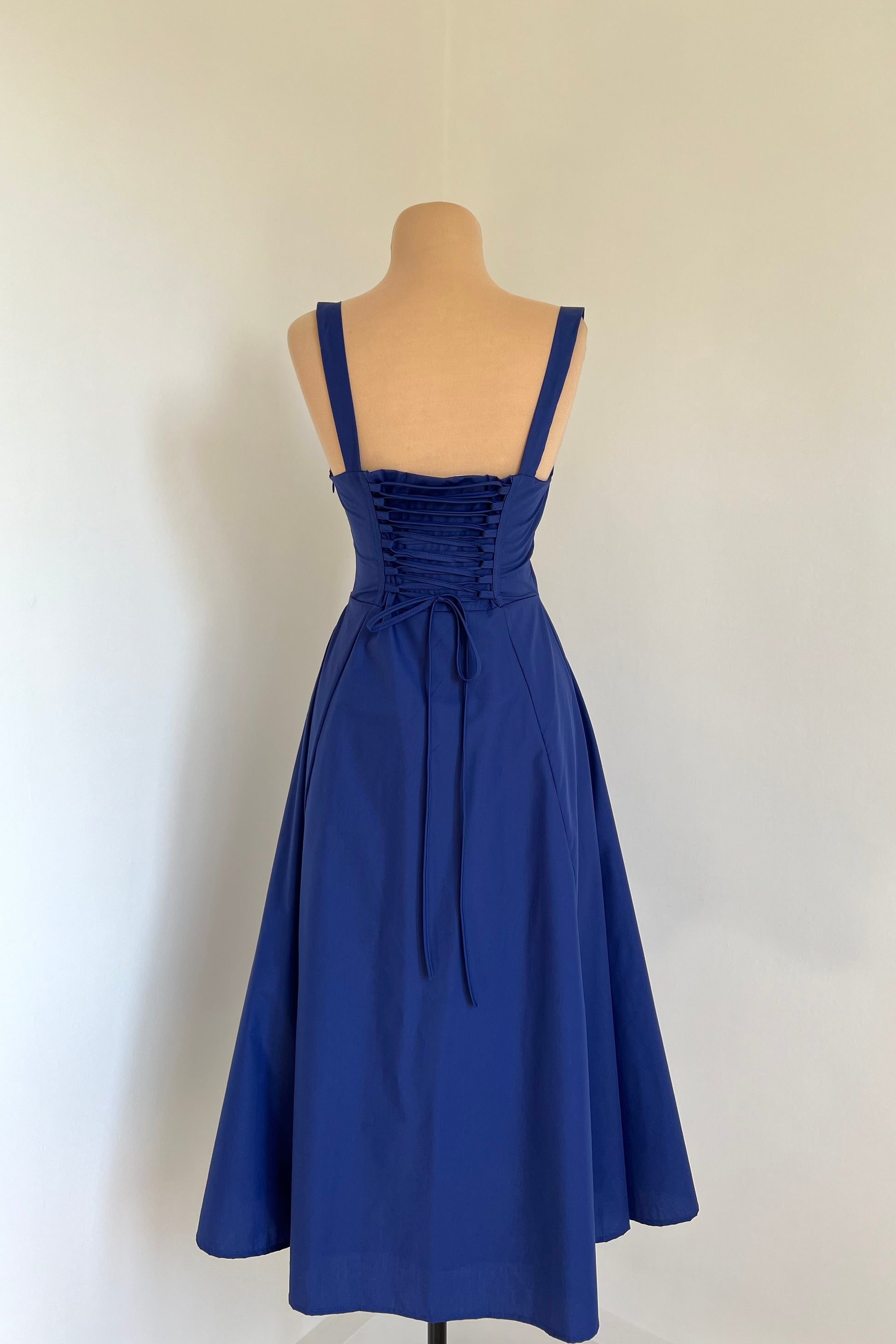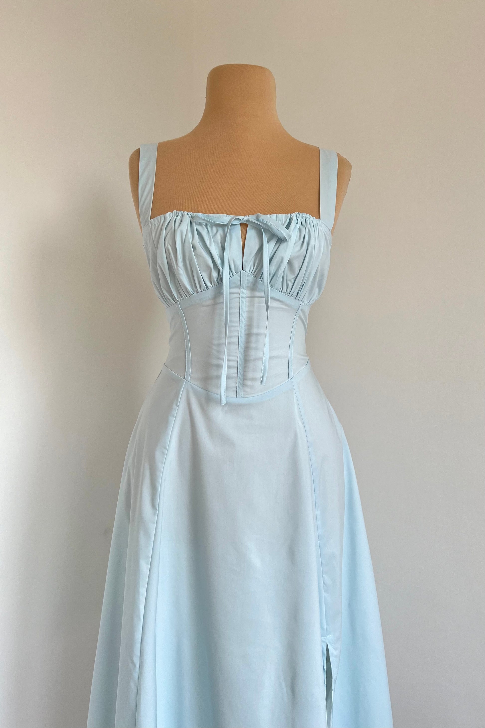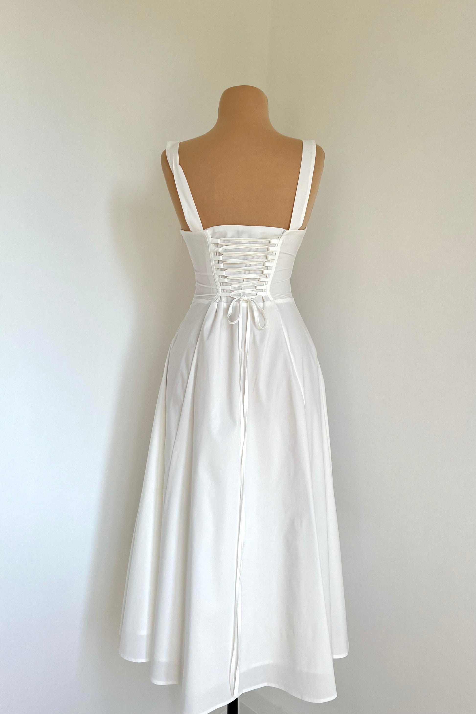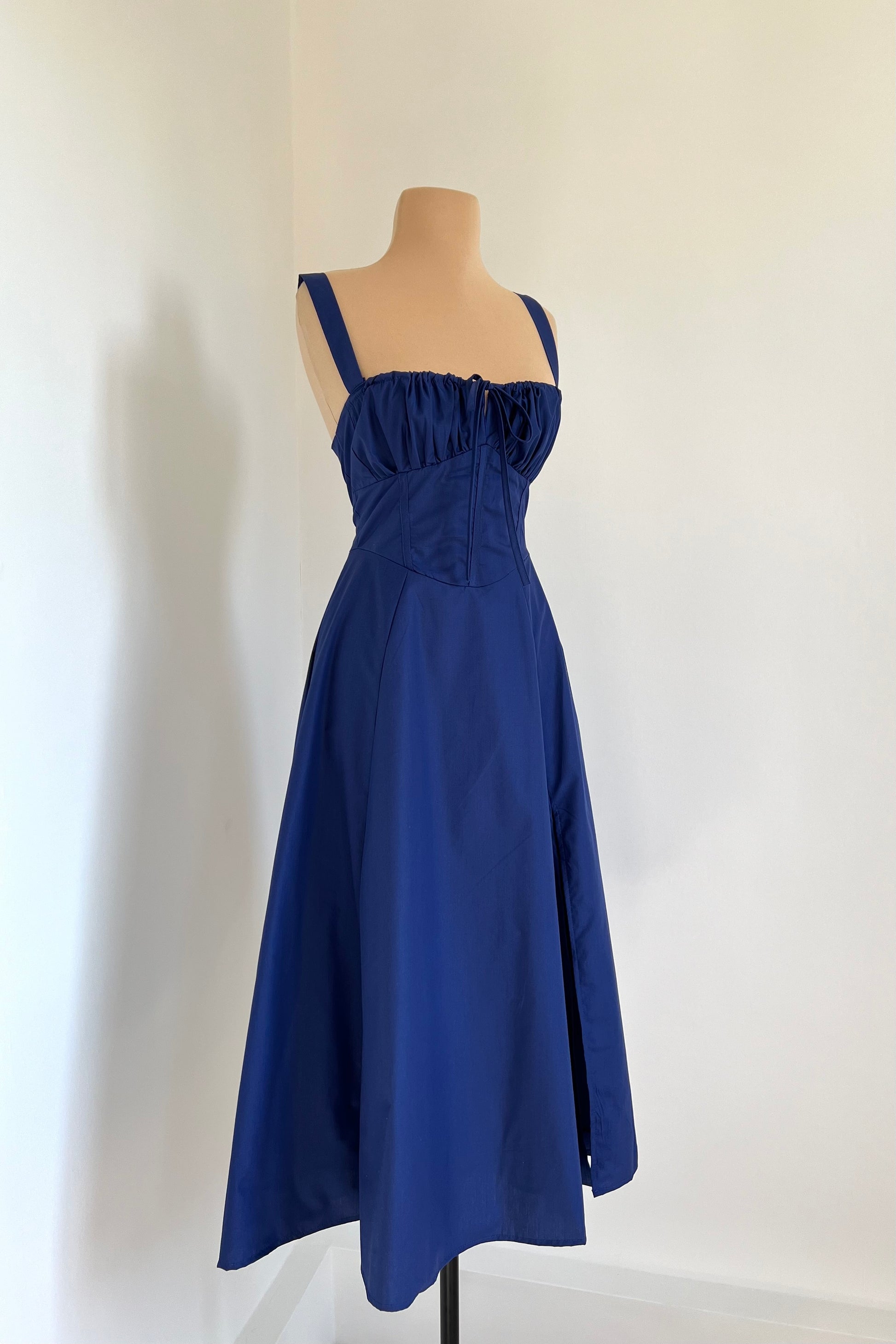 Midi dress with a corset and an adjustable chest detail.