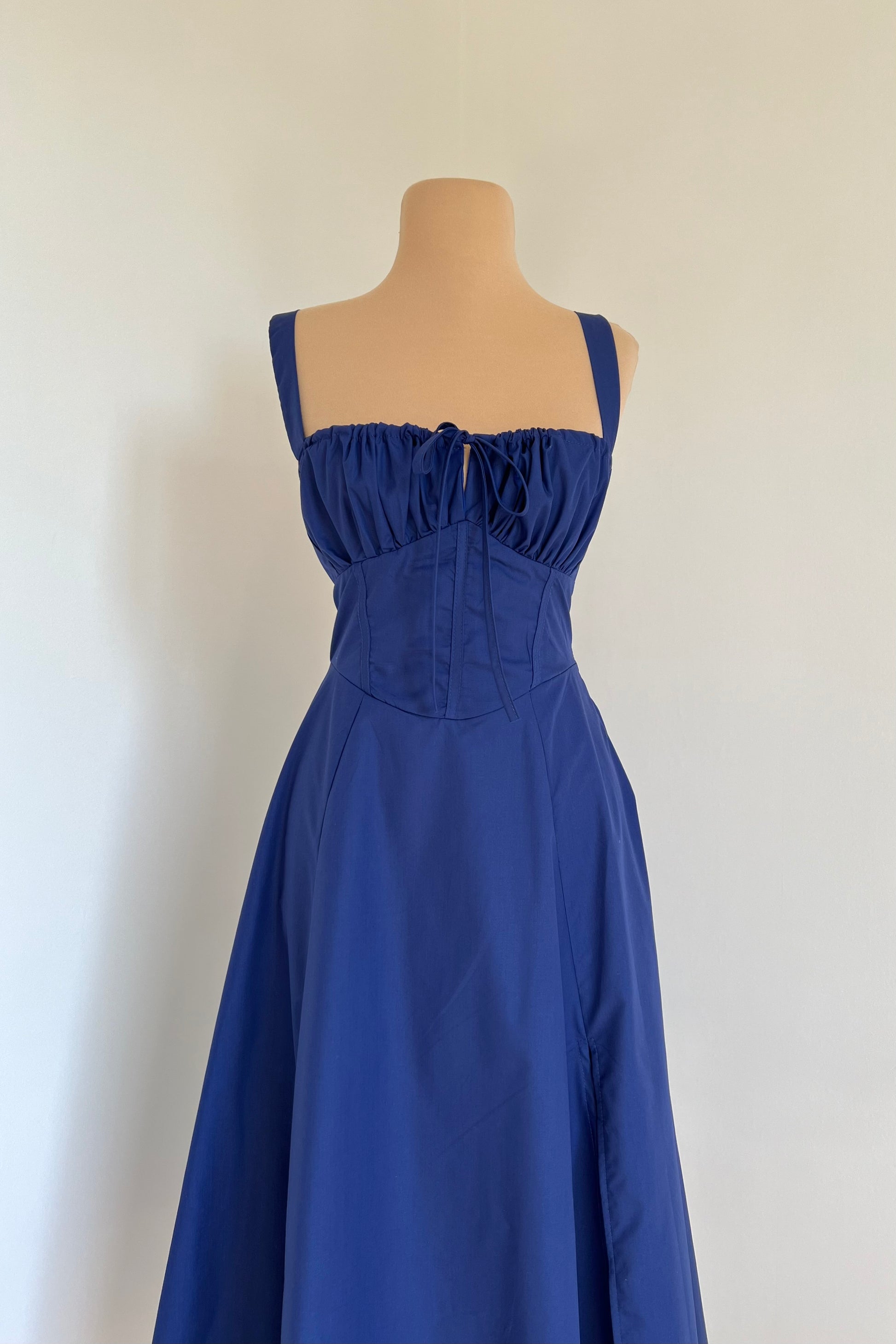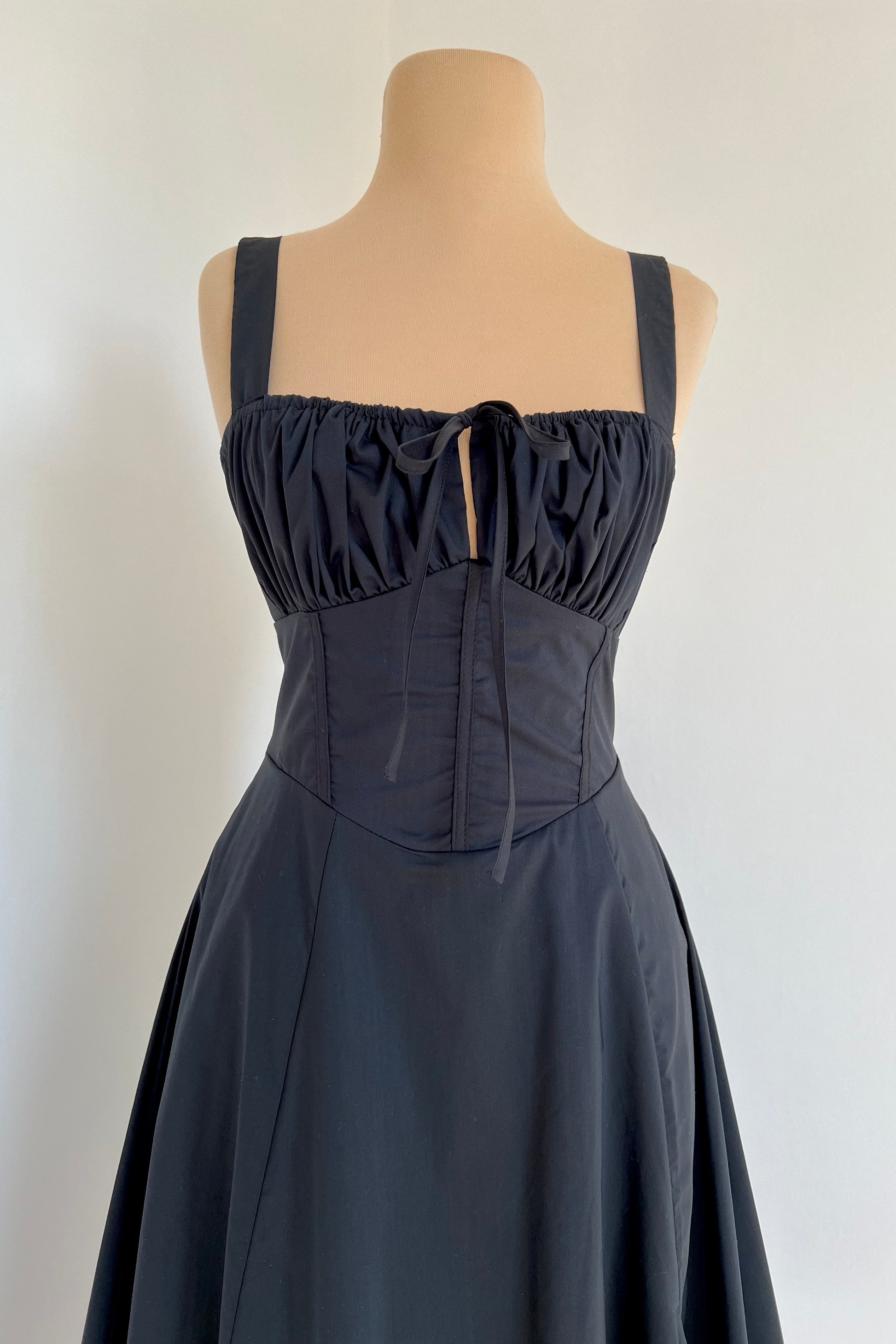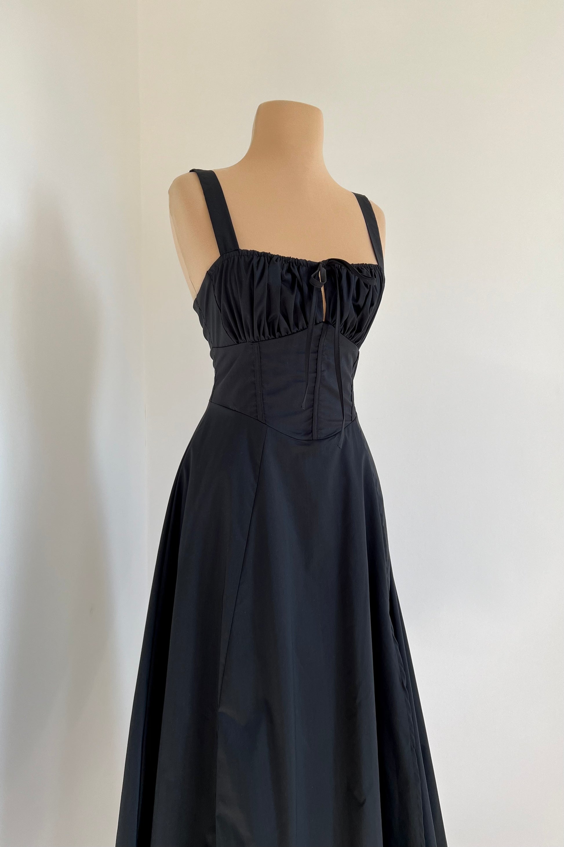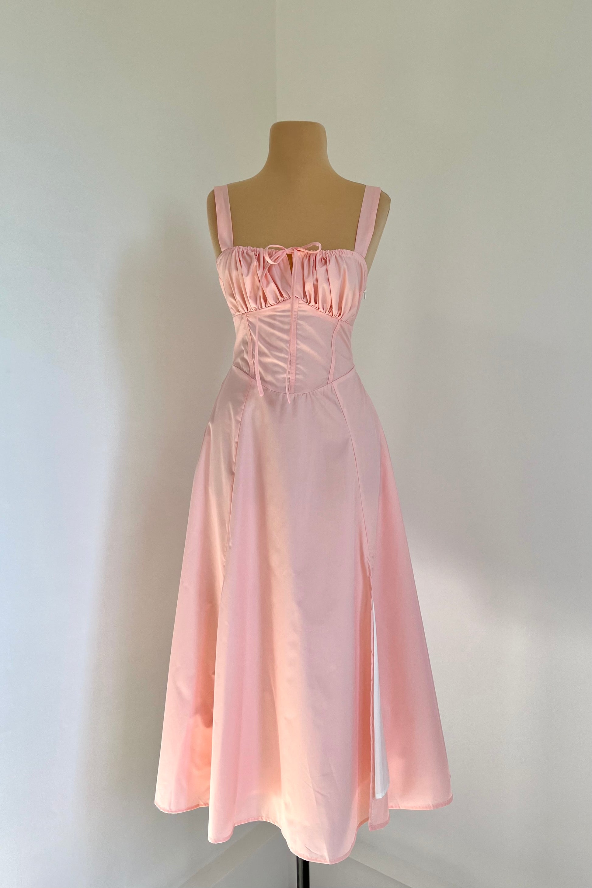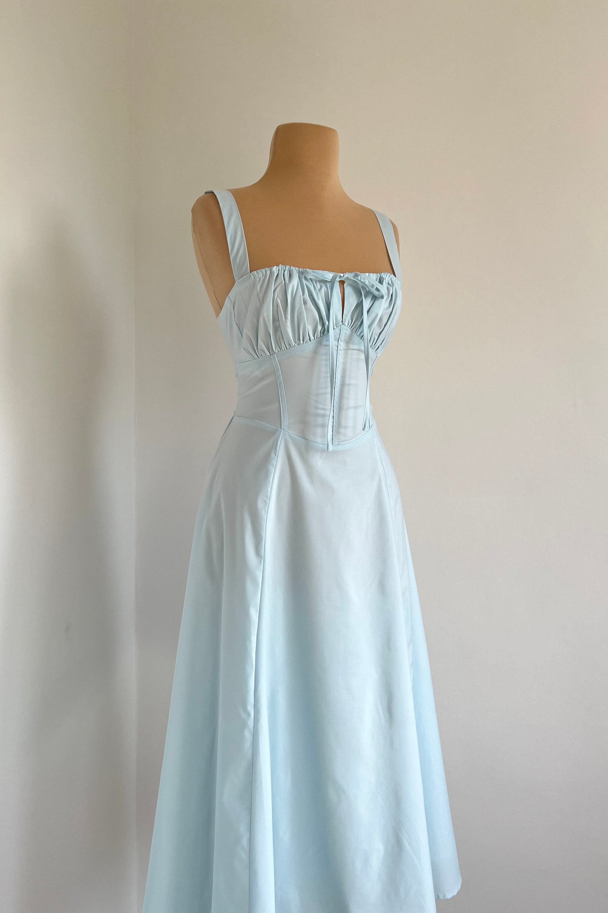 Midi dress with a corset and an adjustable chest detail.