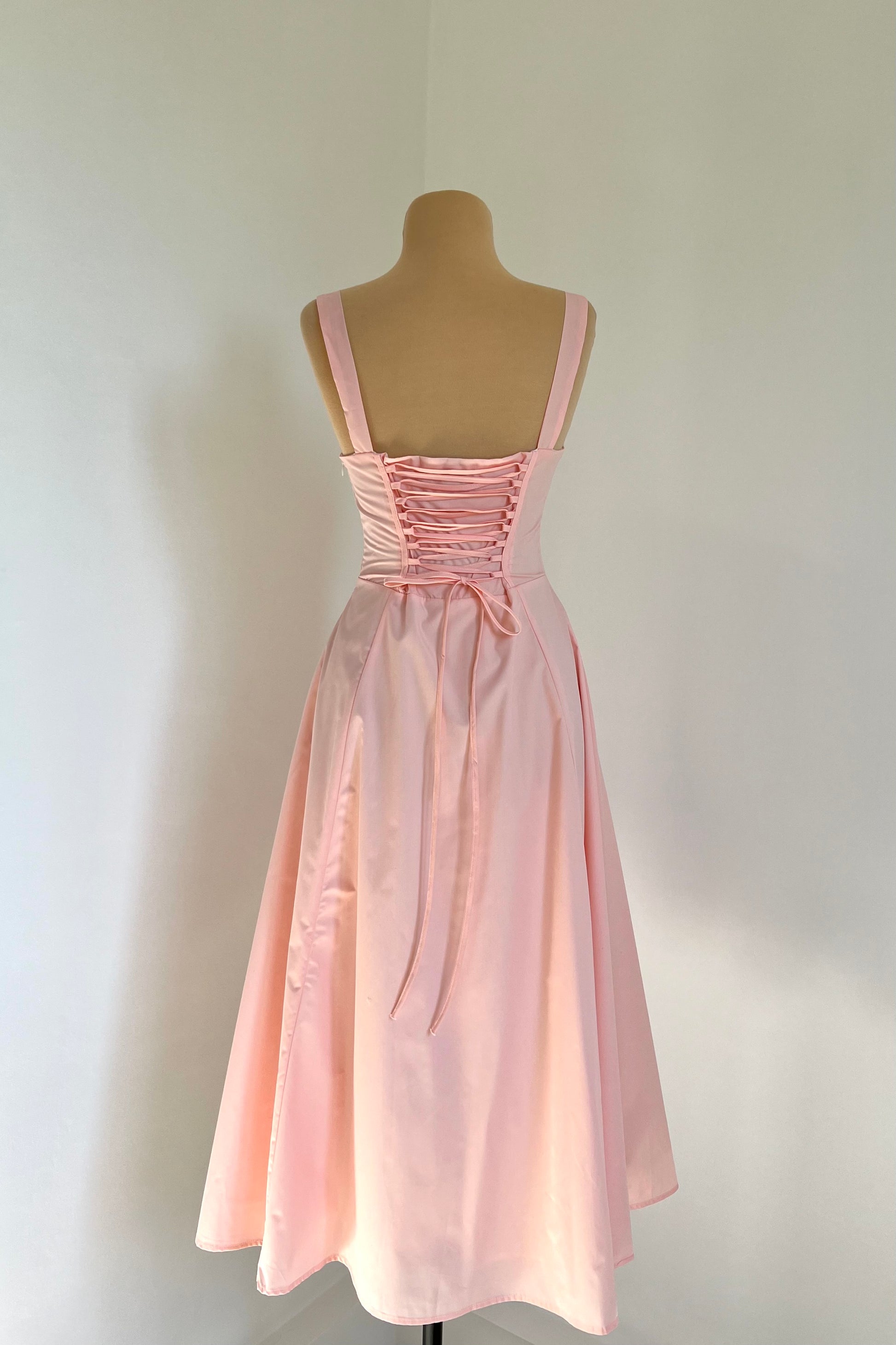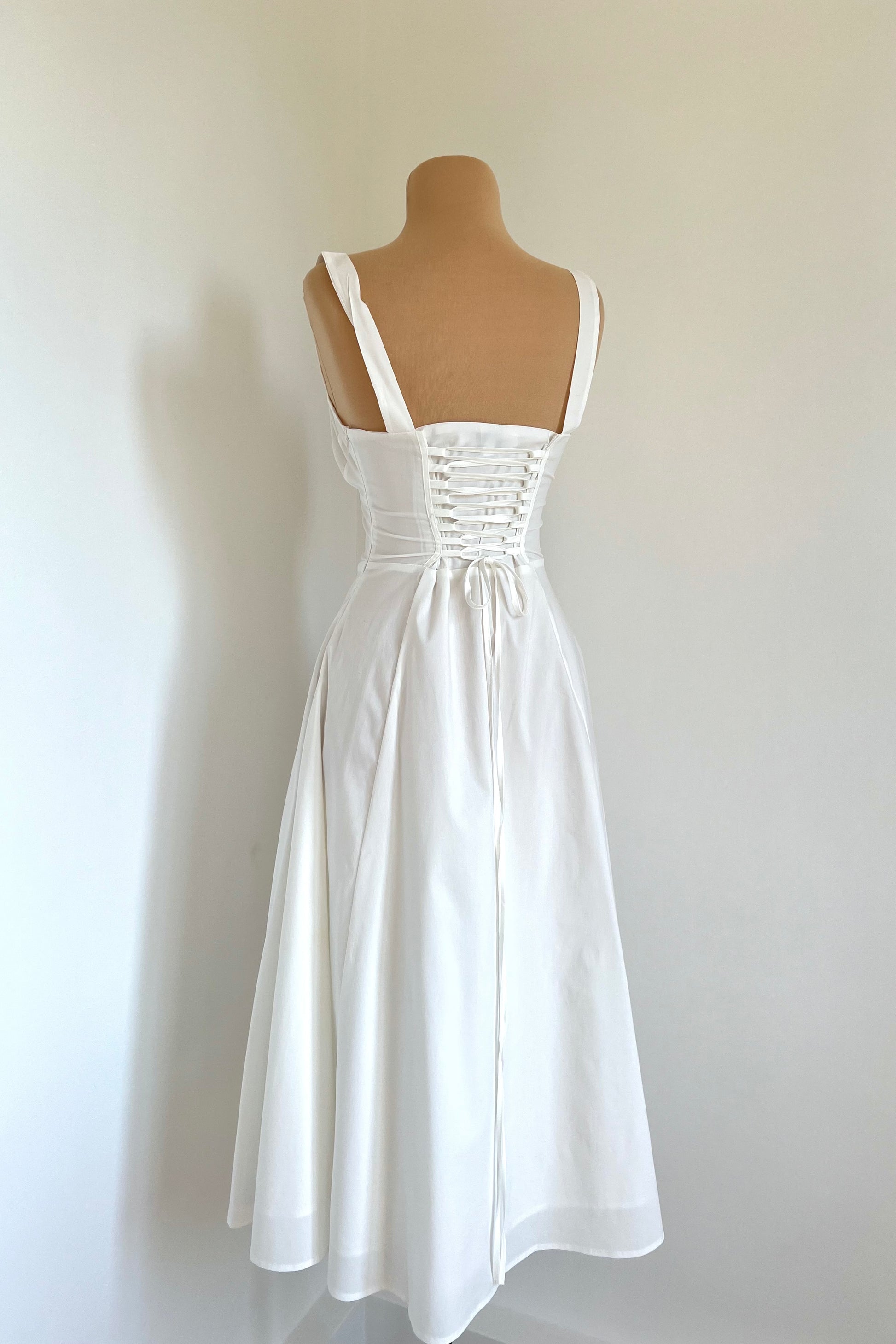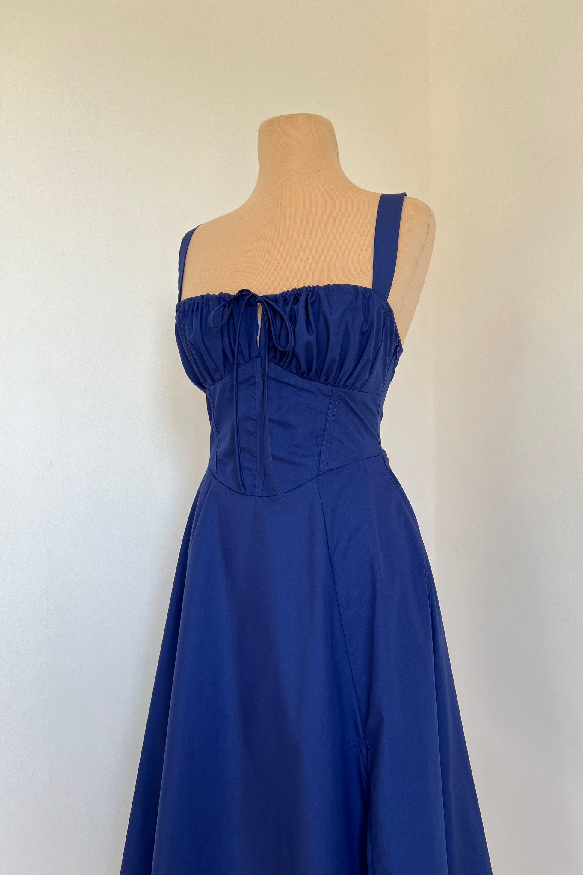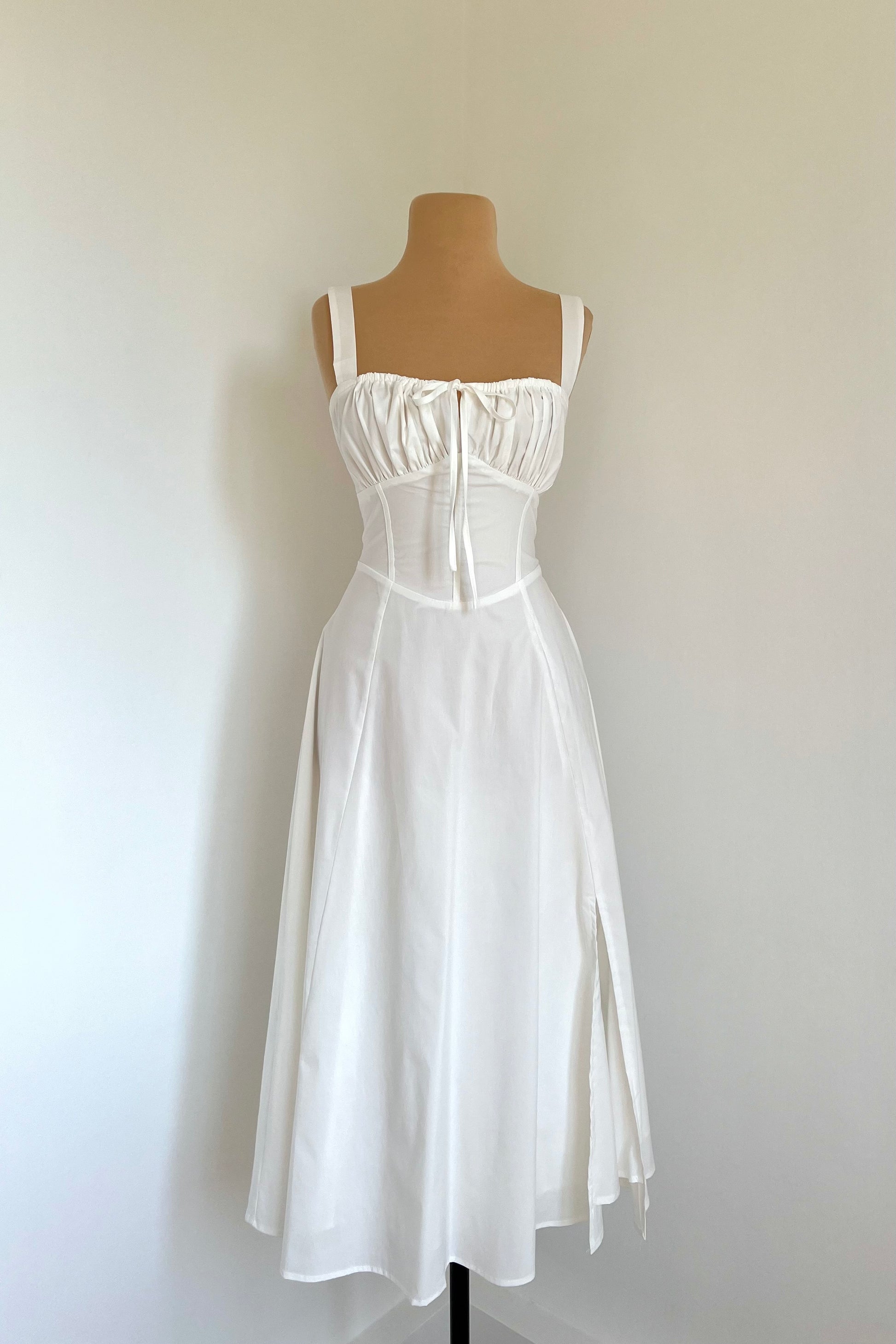 Midi dress with a corset and an adjustable chest detail.