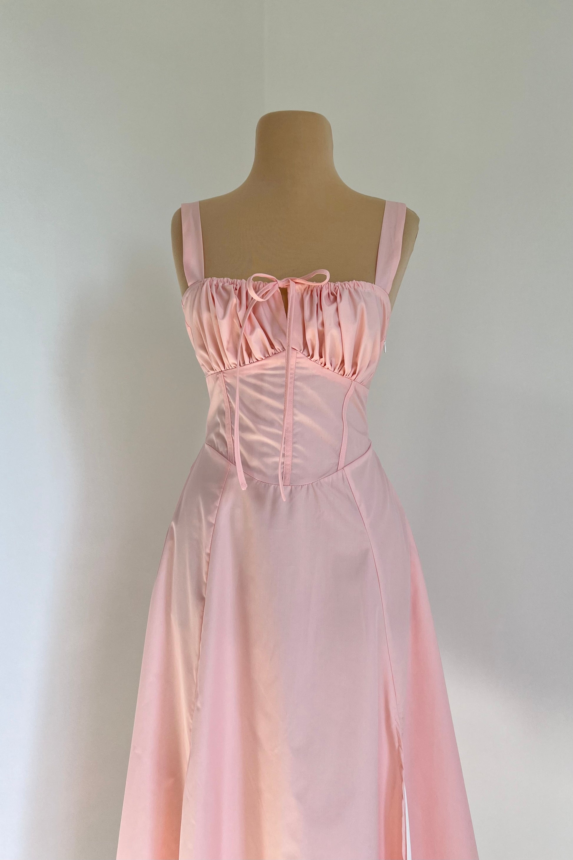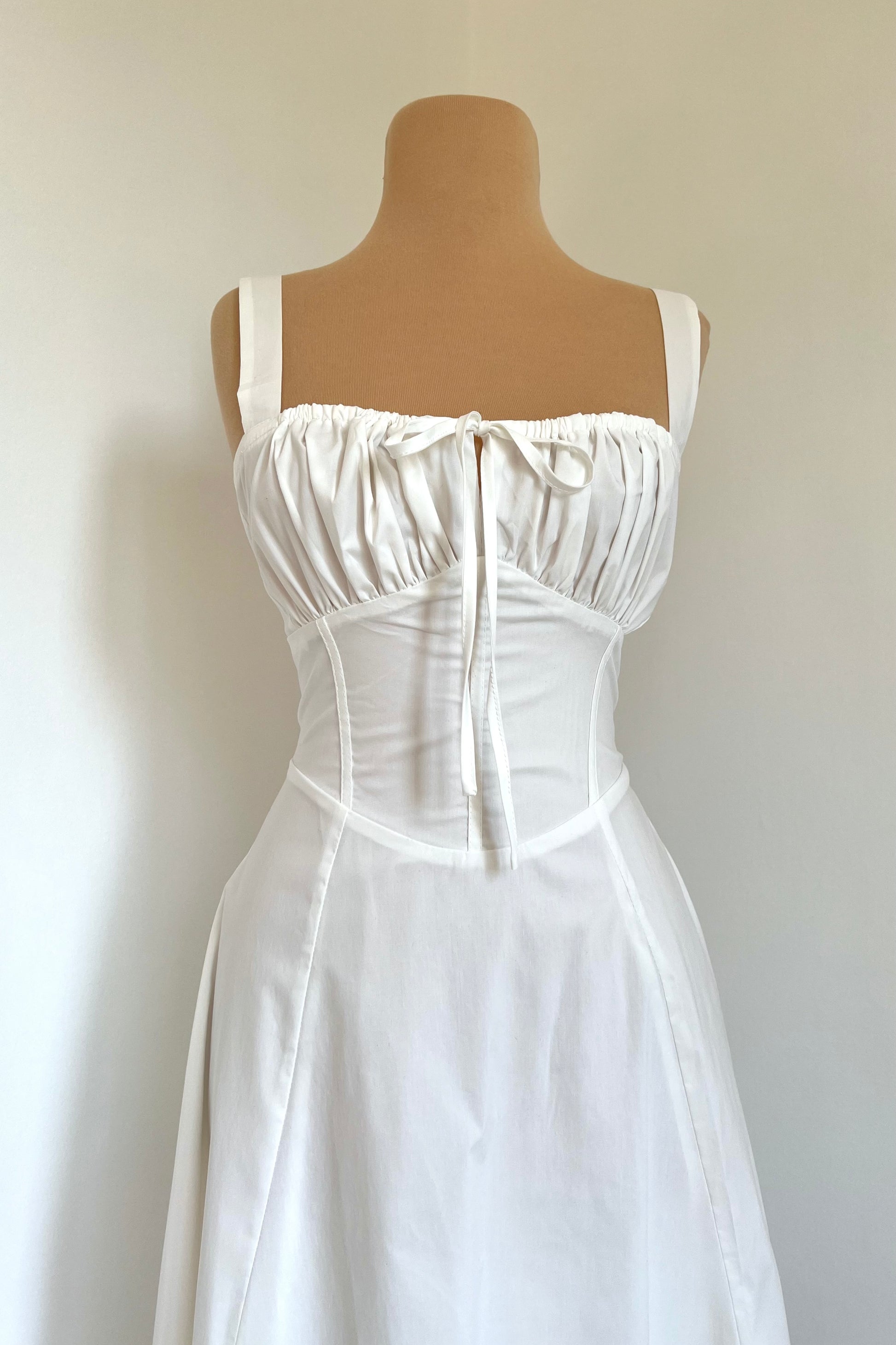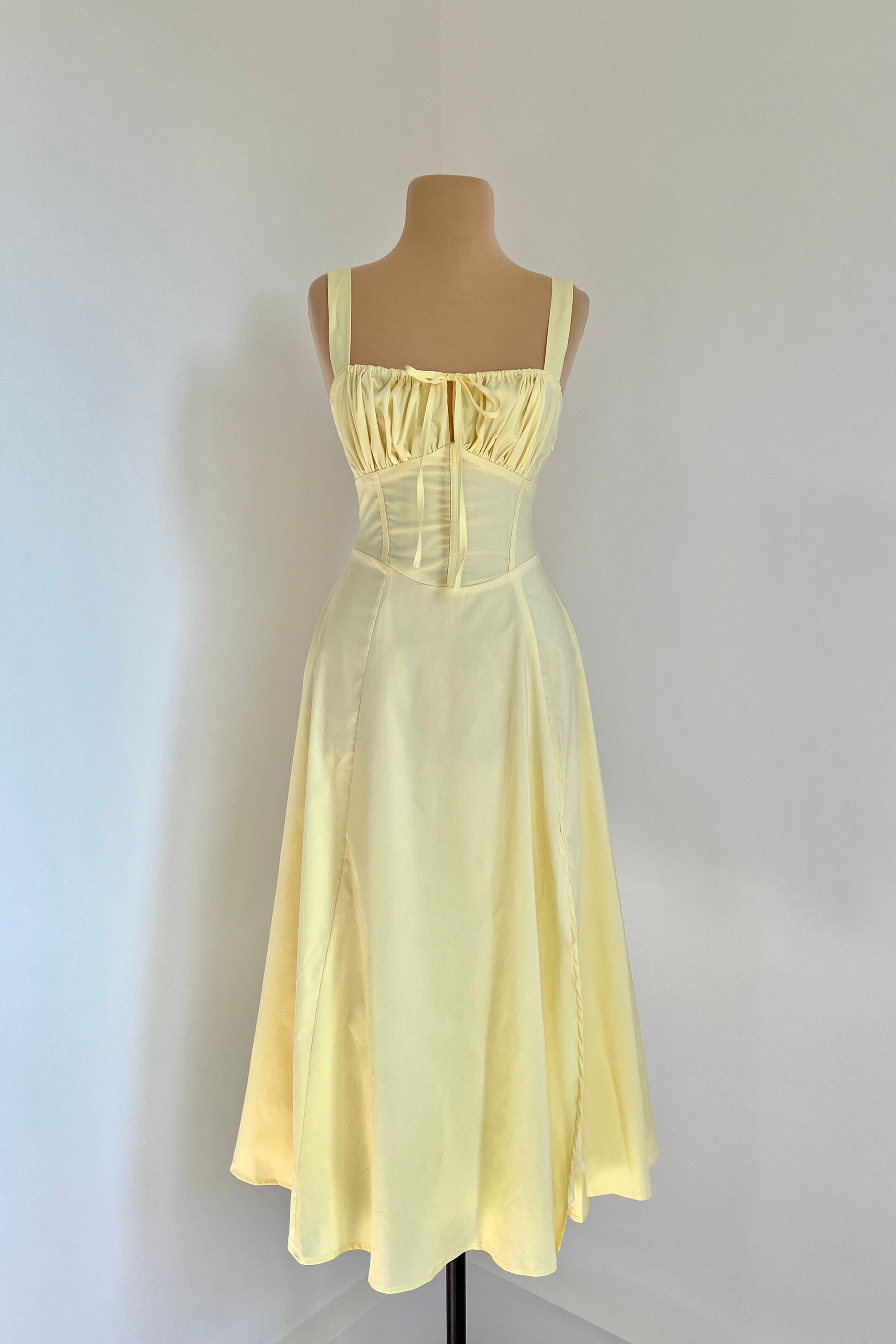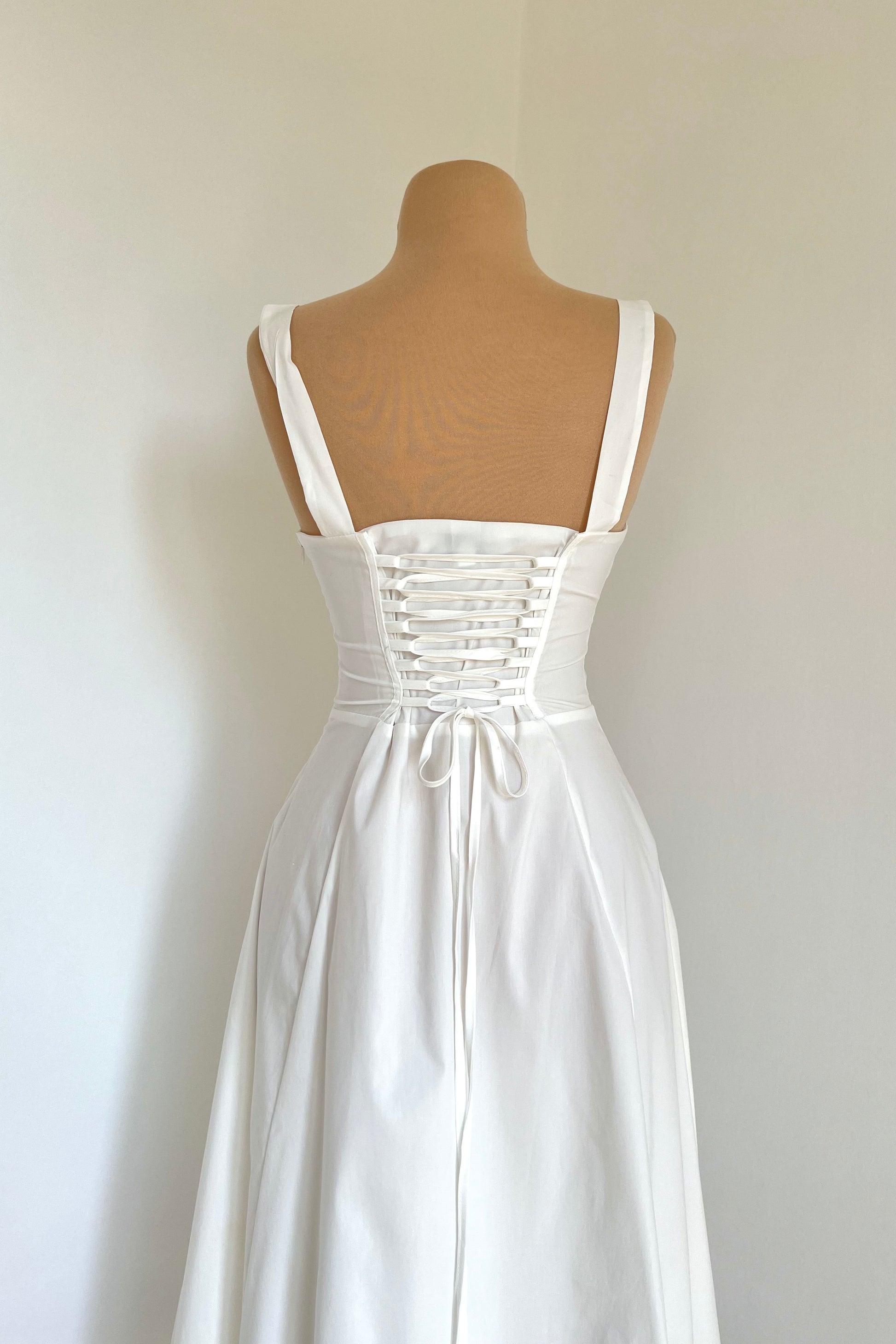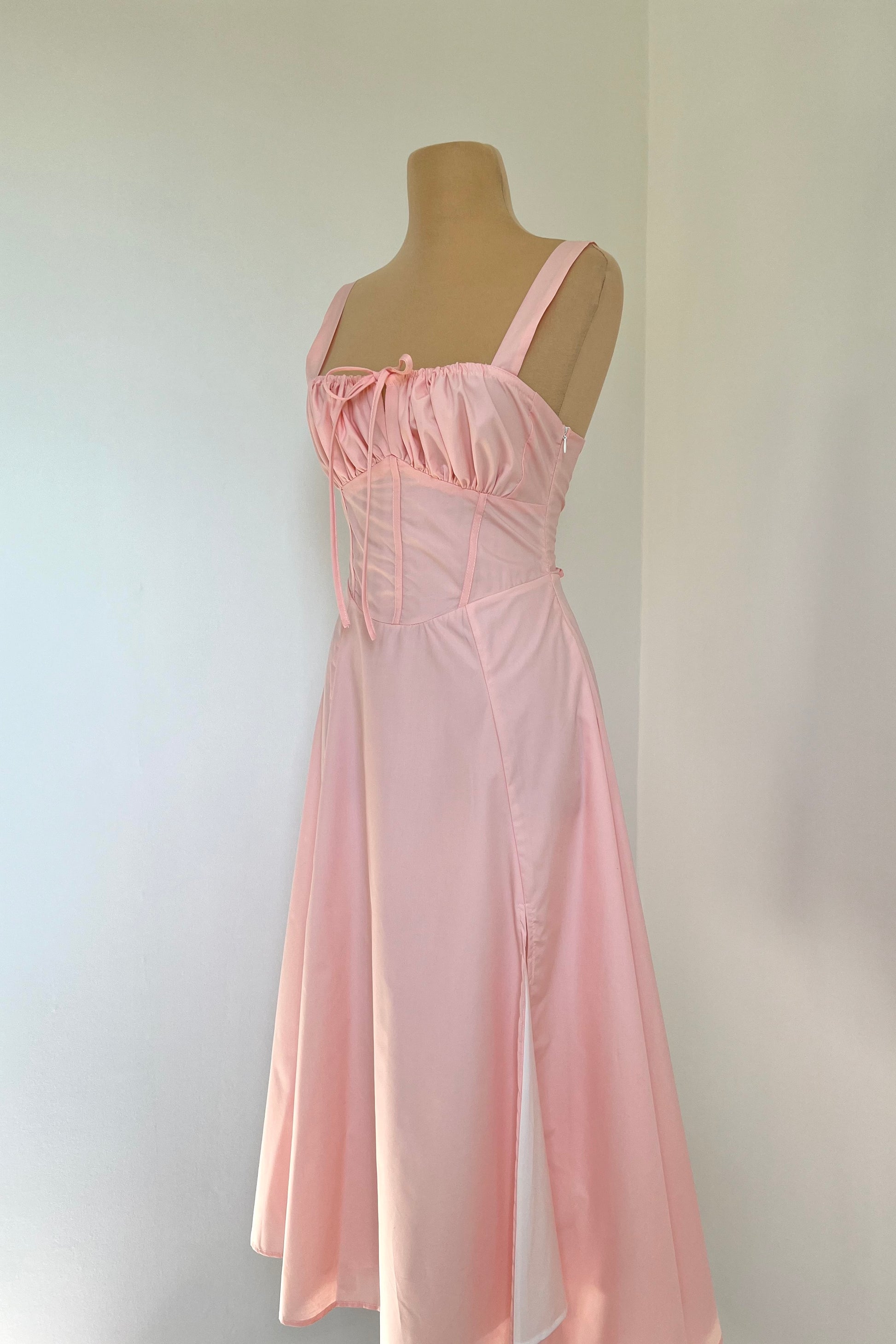 Midi dress with a corset and an adjustable chest detail.