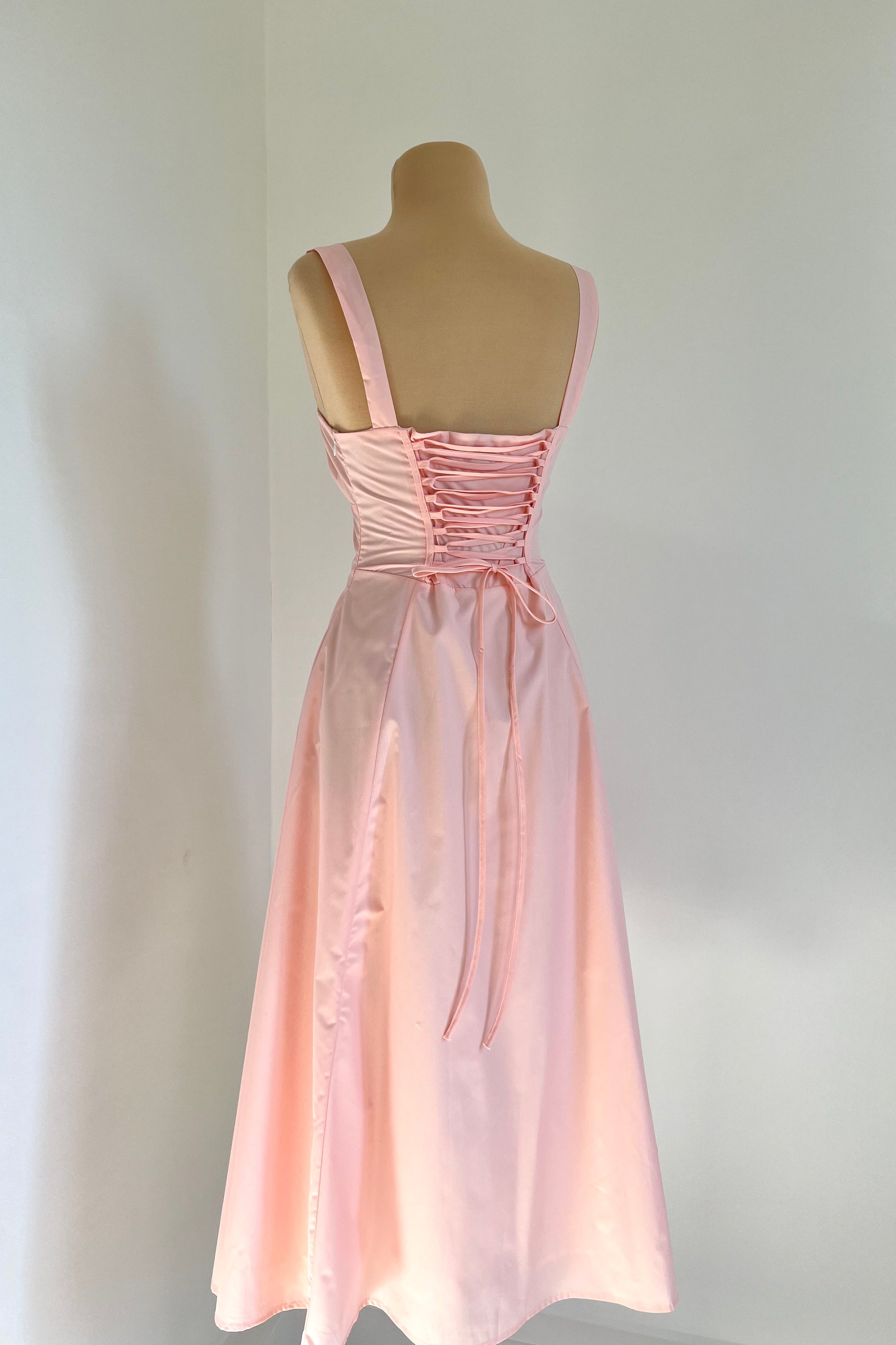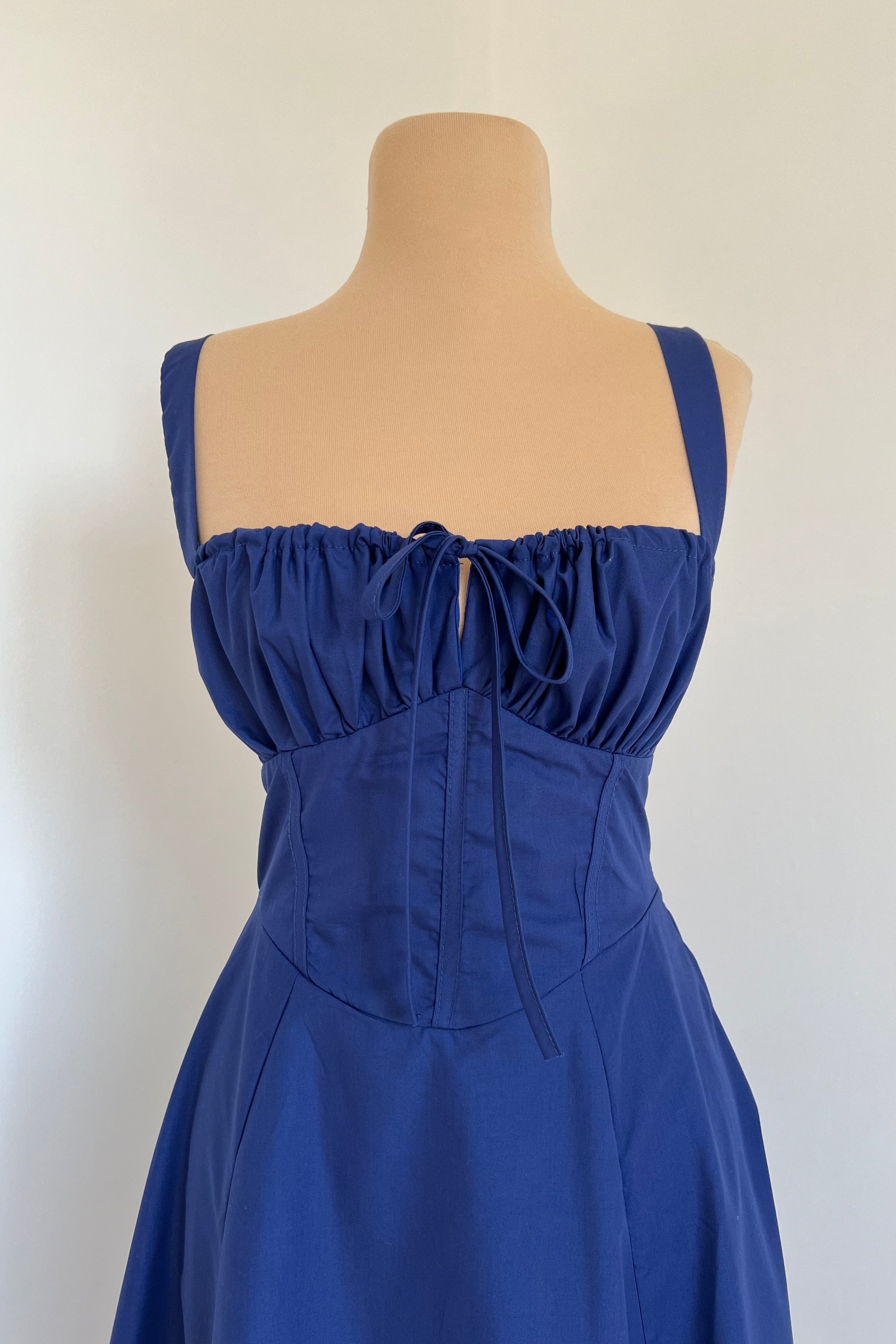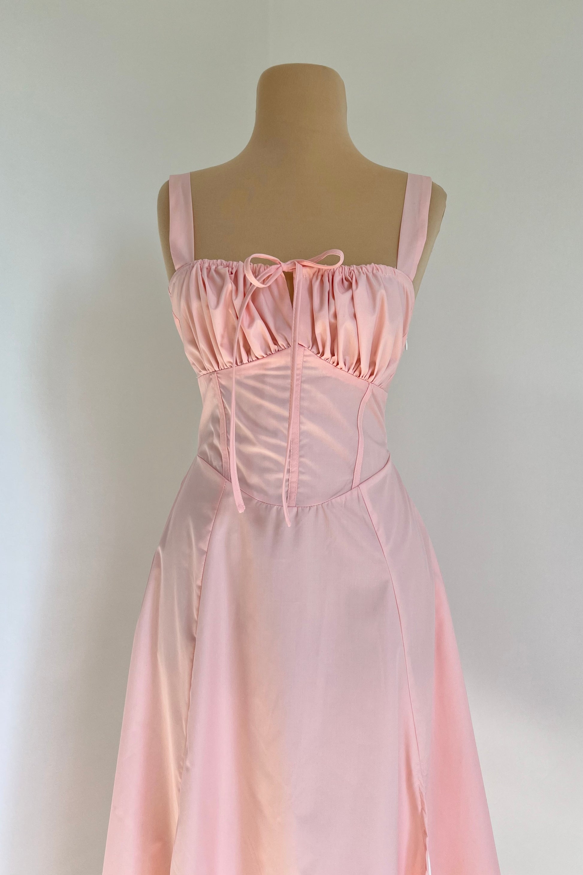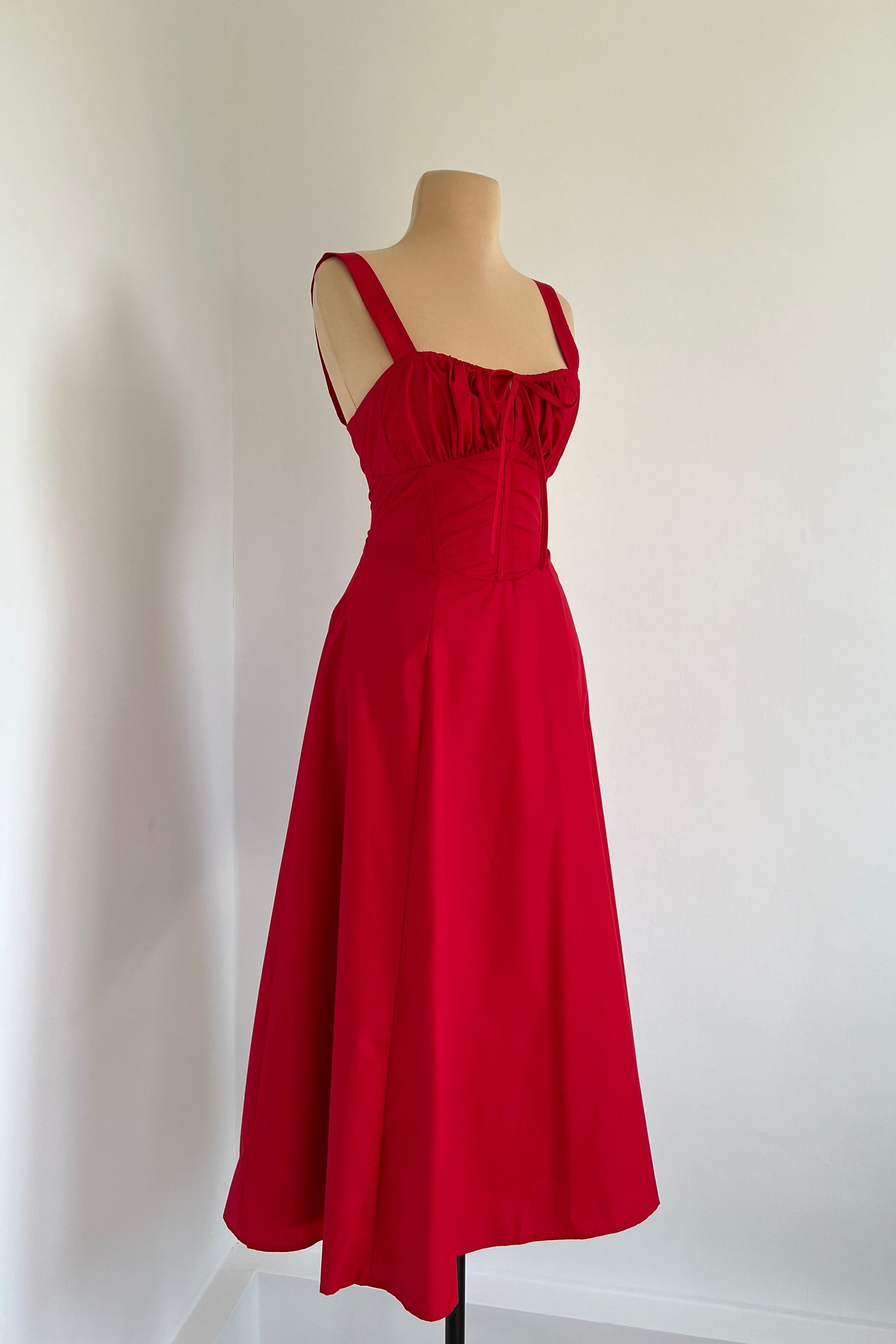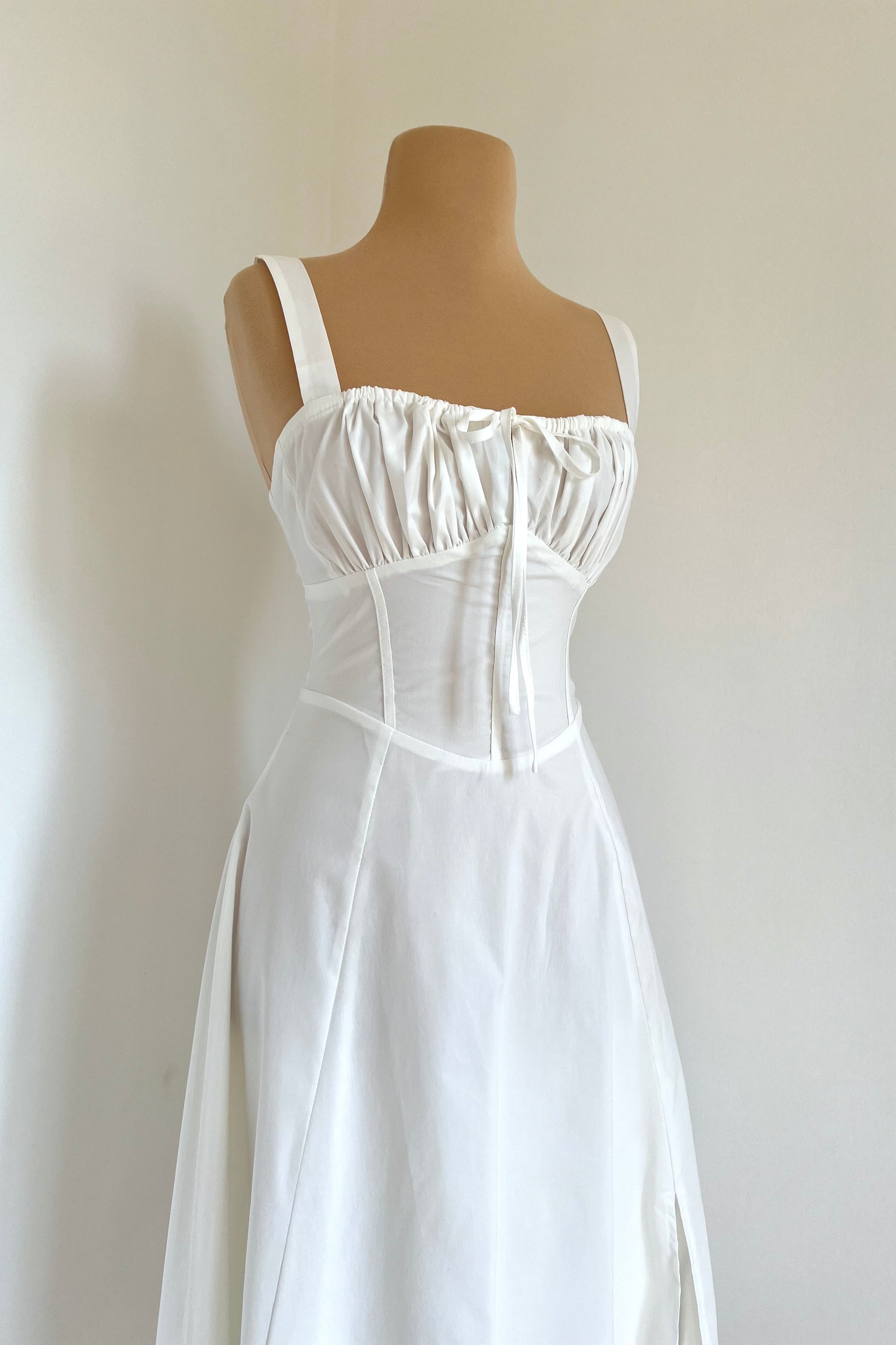 Midi dress with a corset and an adjustable chest detail.