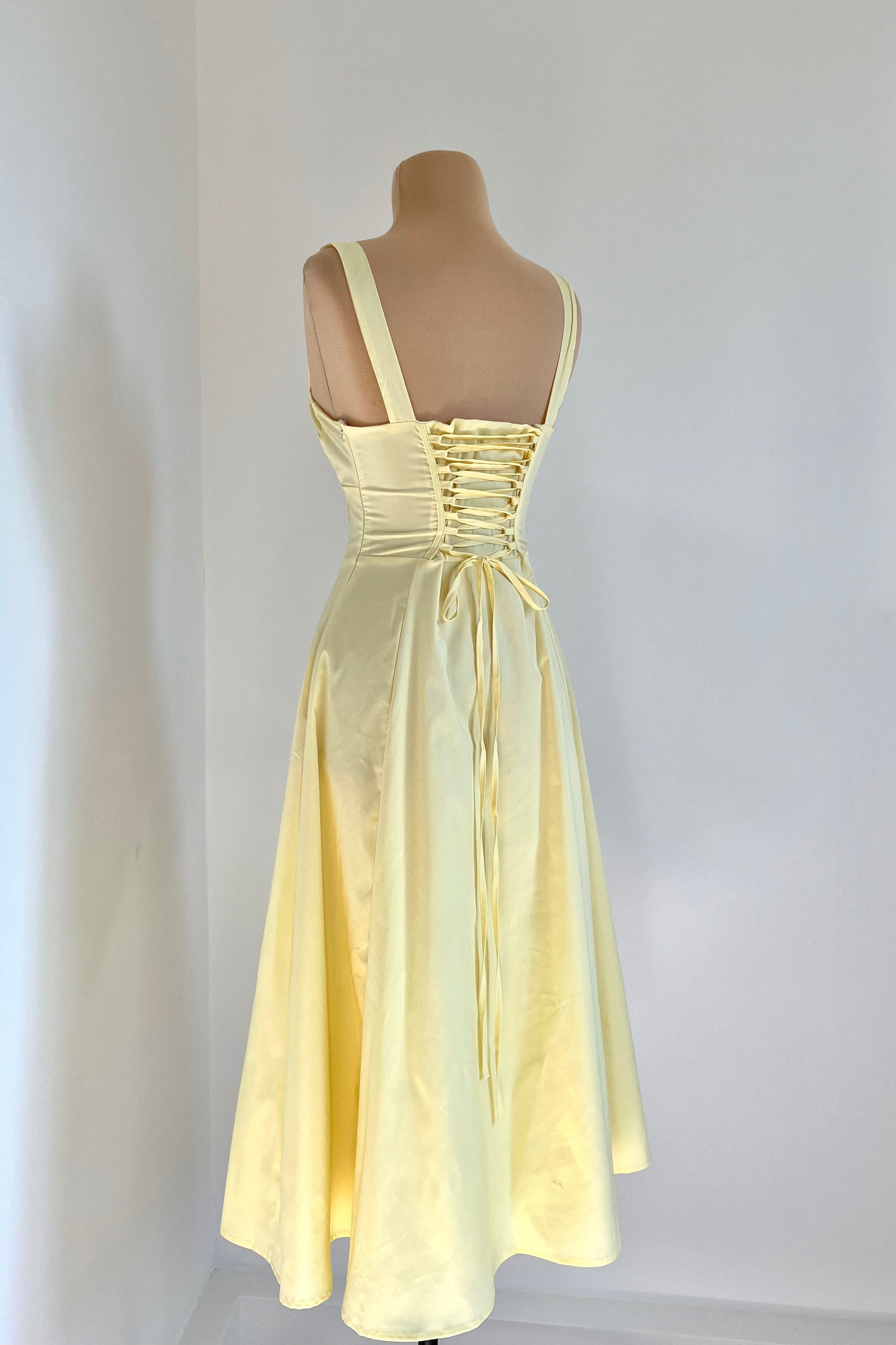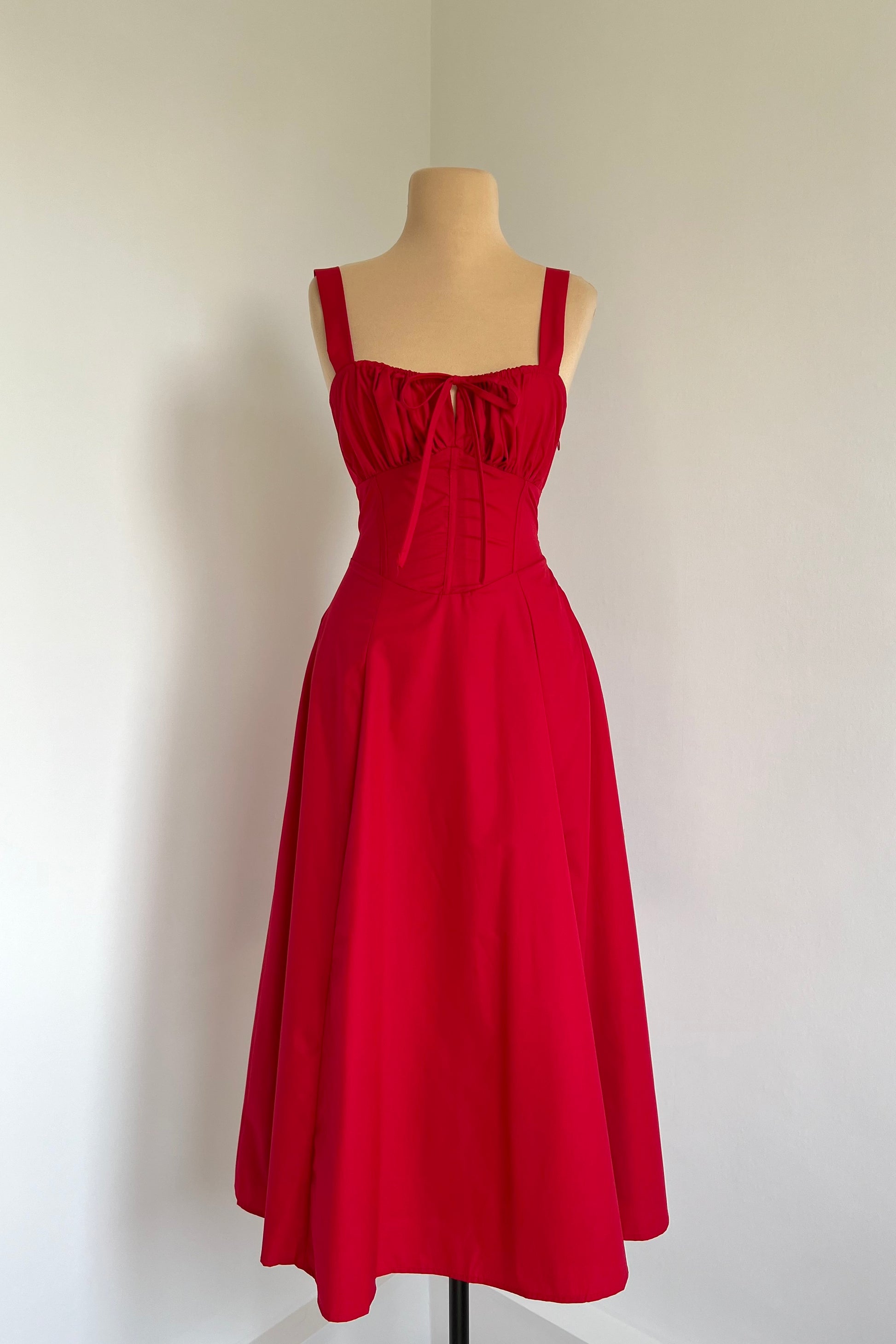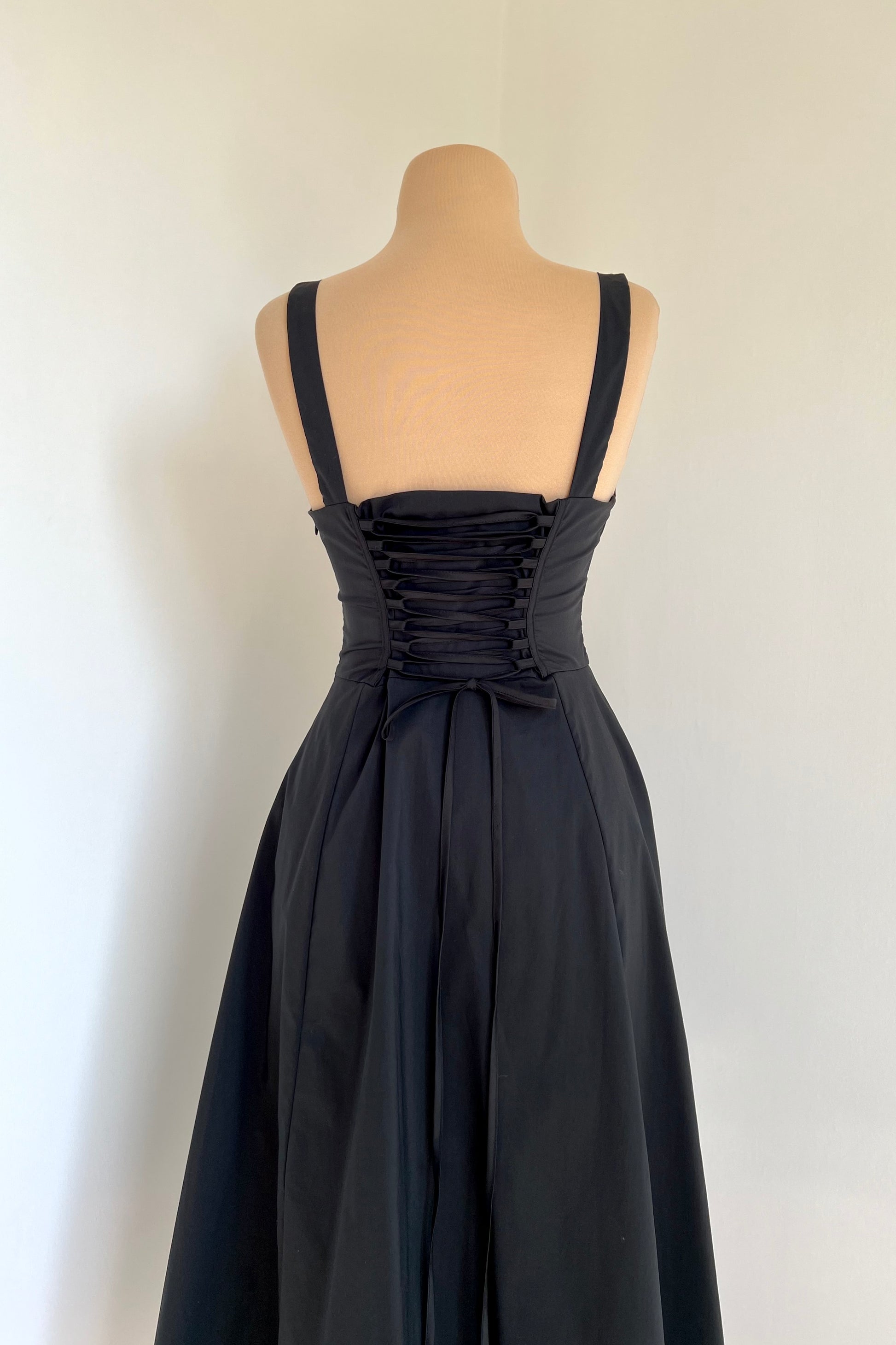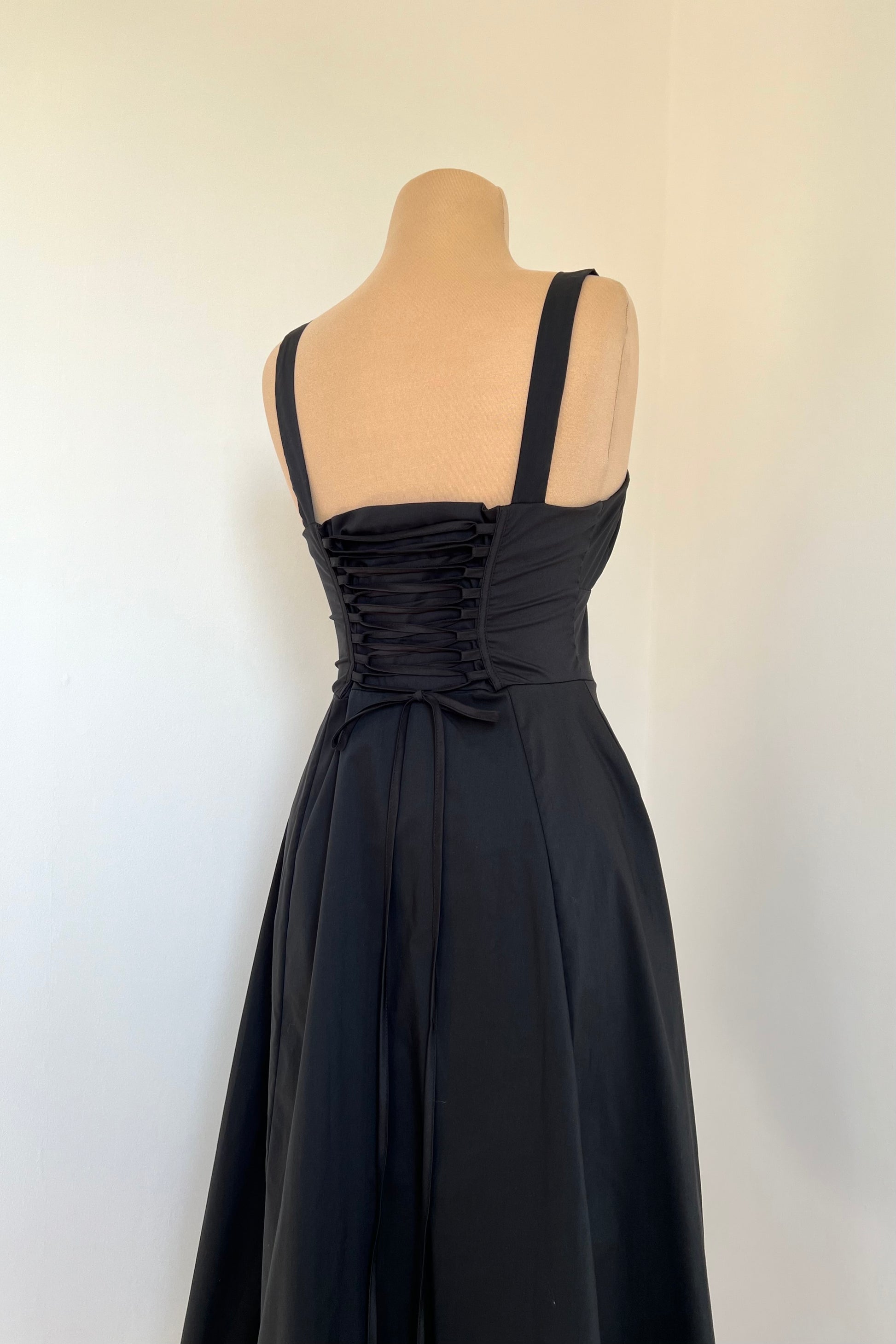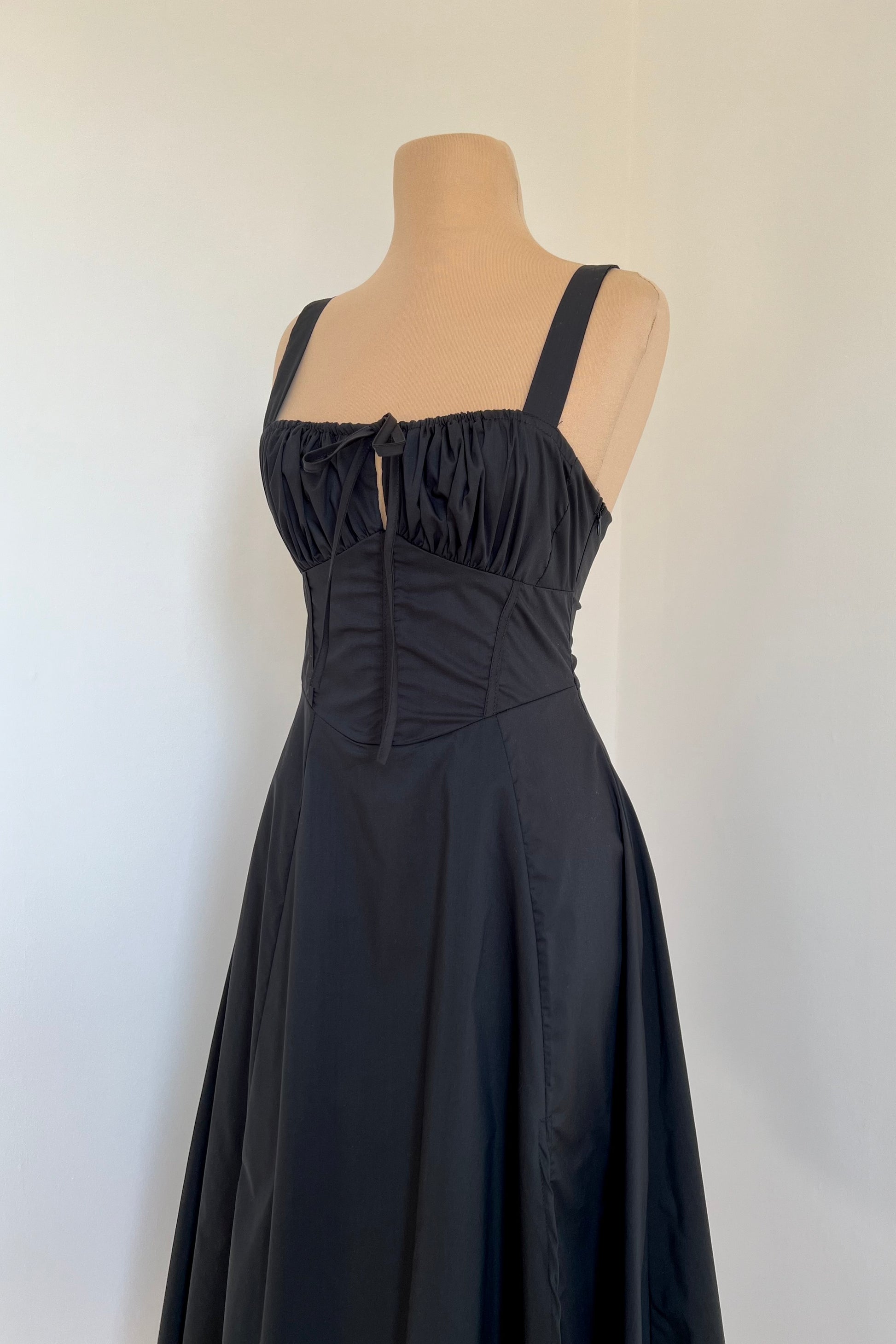 Midi dress with a corset and an adjustable chest detail.