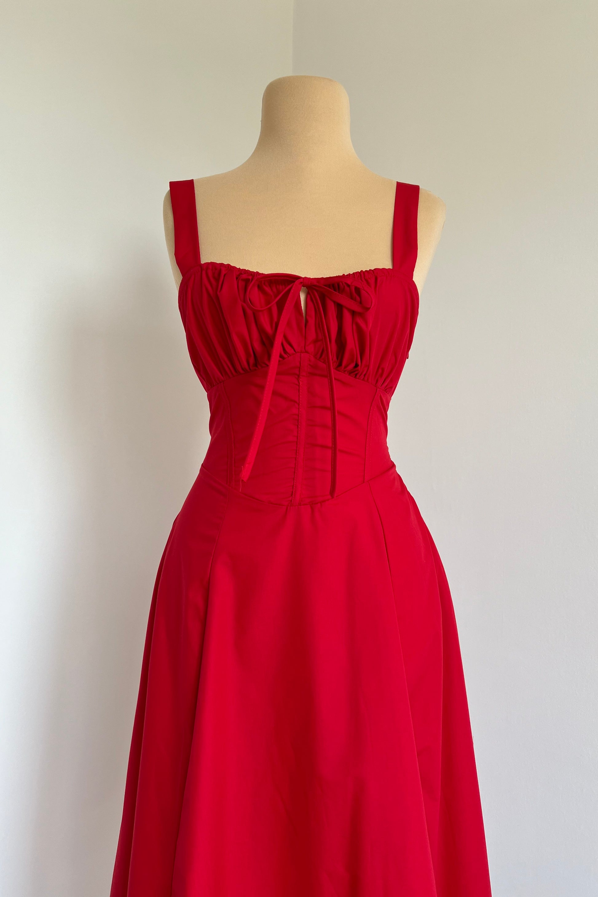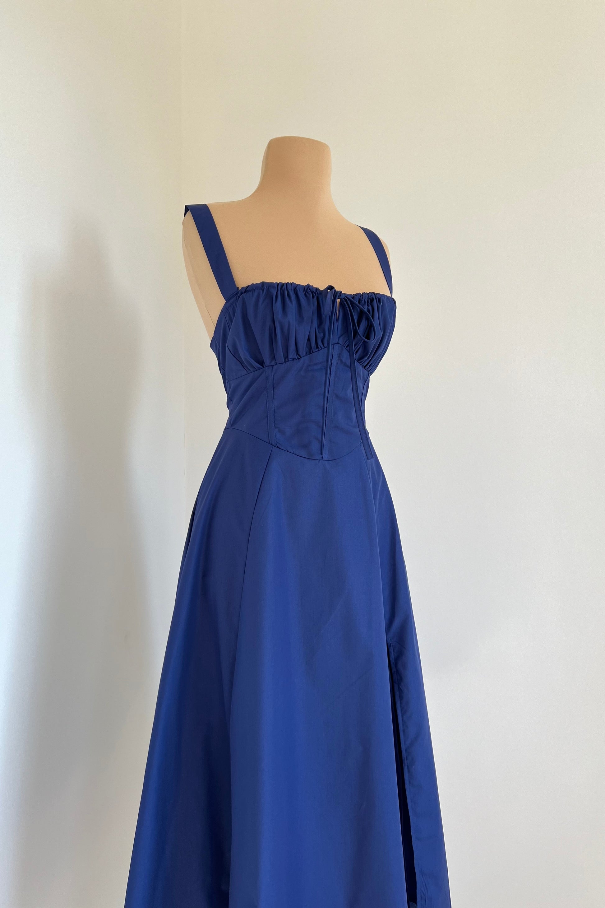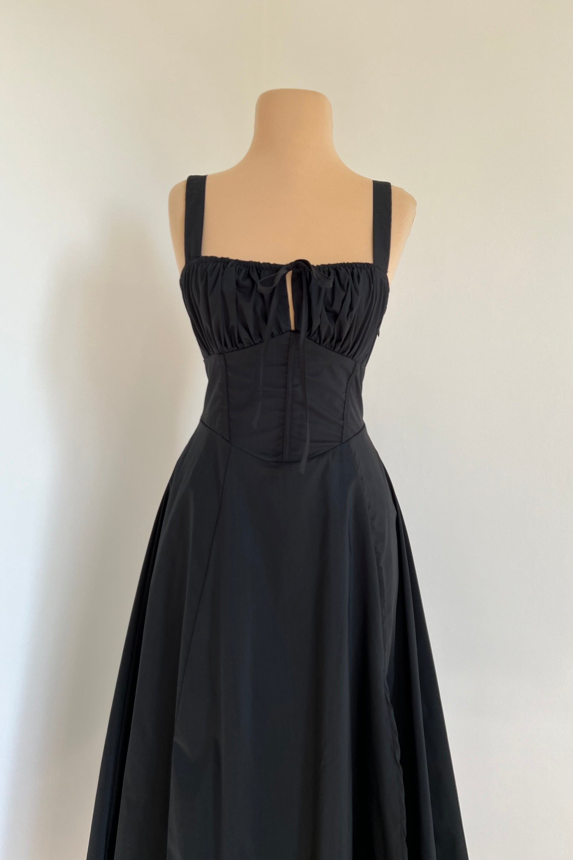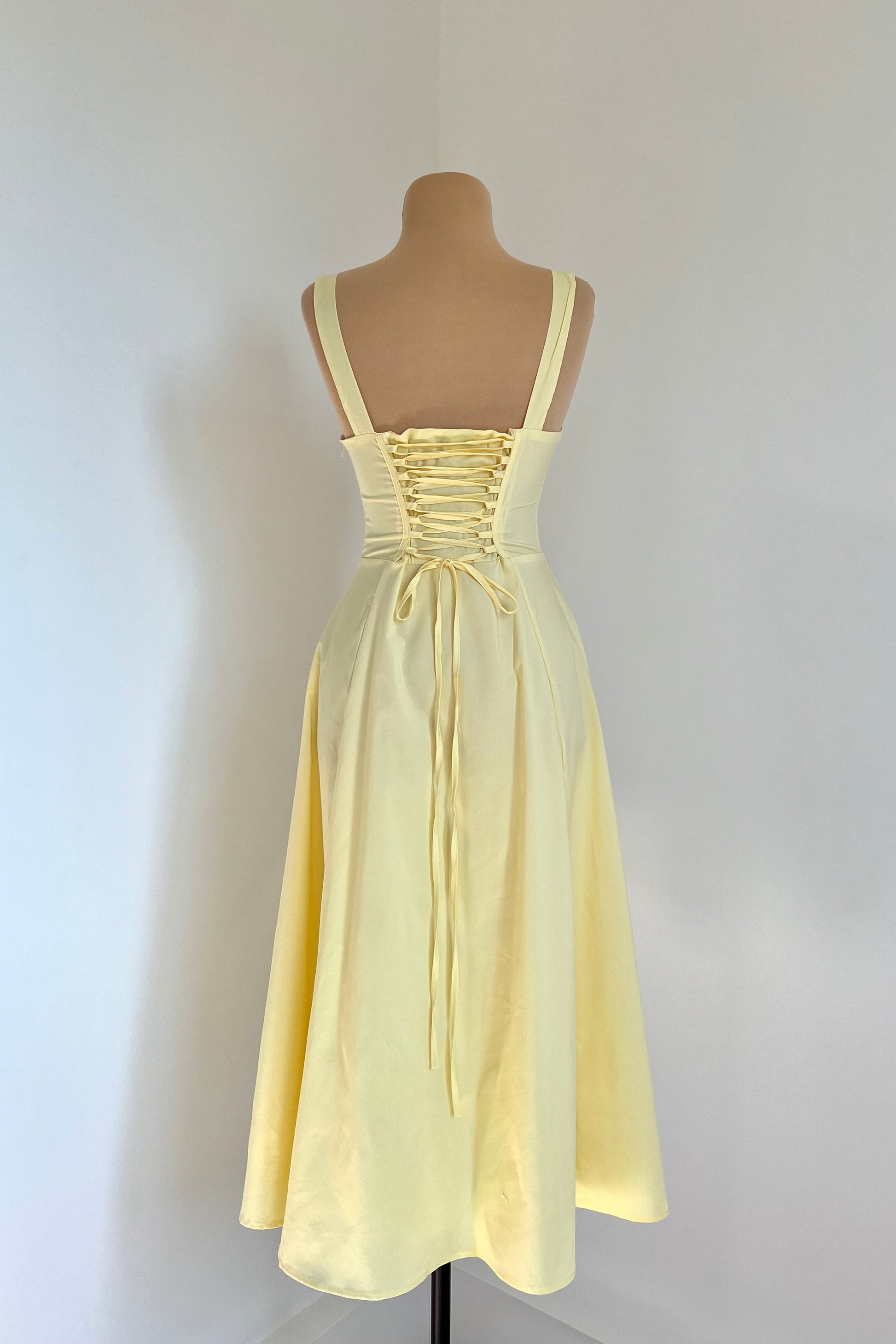 Midi dress with a corset and an adjustable chest detail.