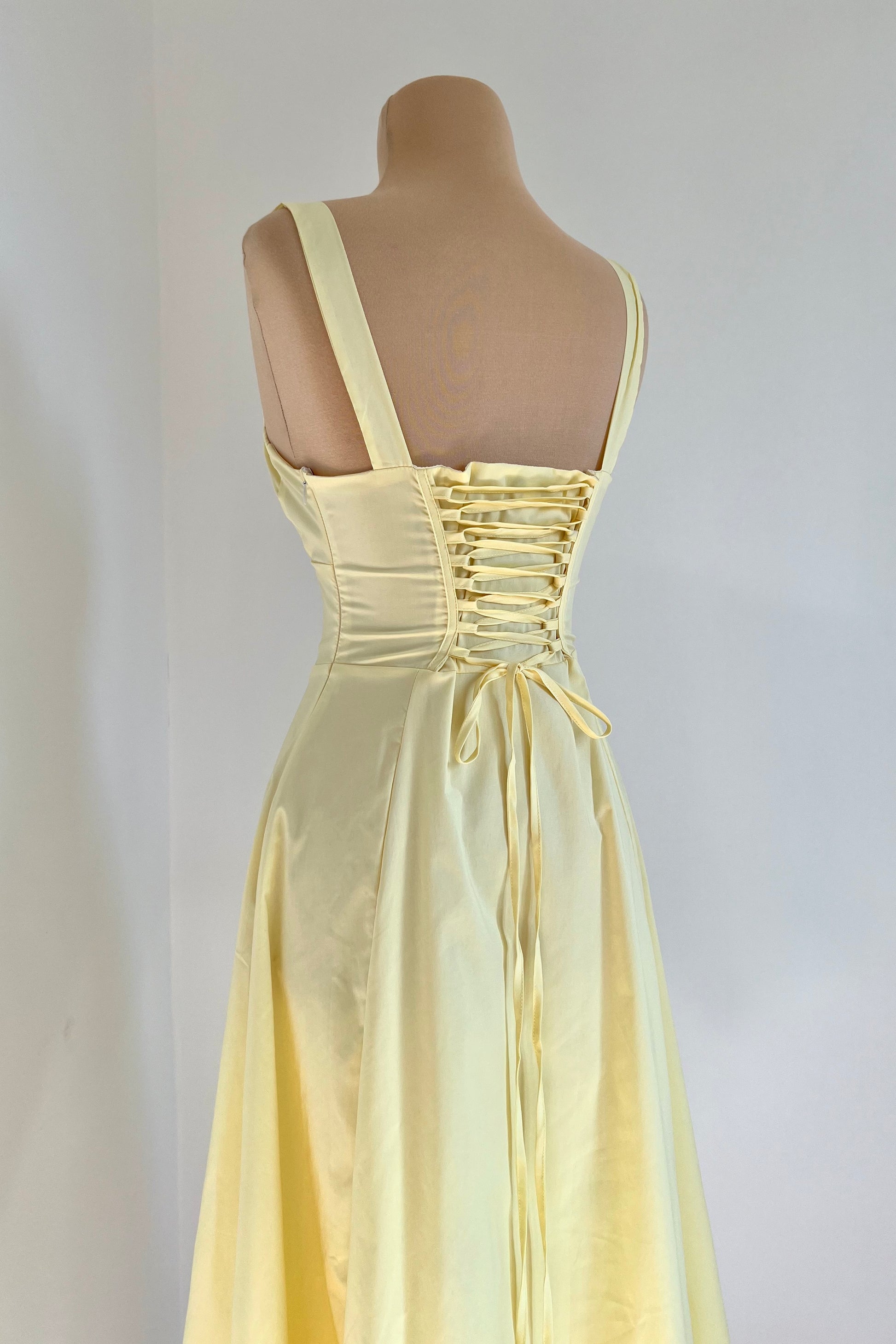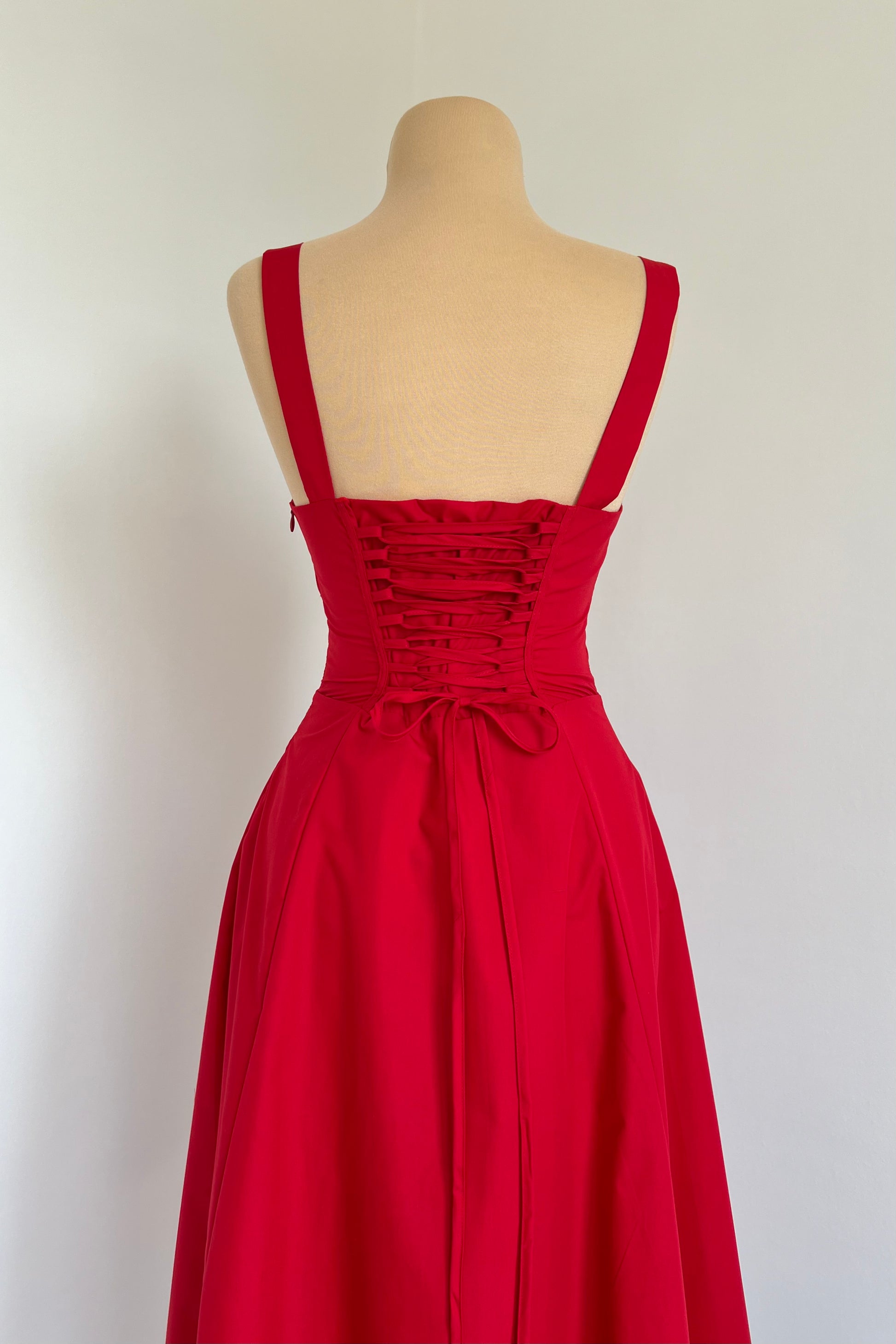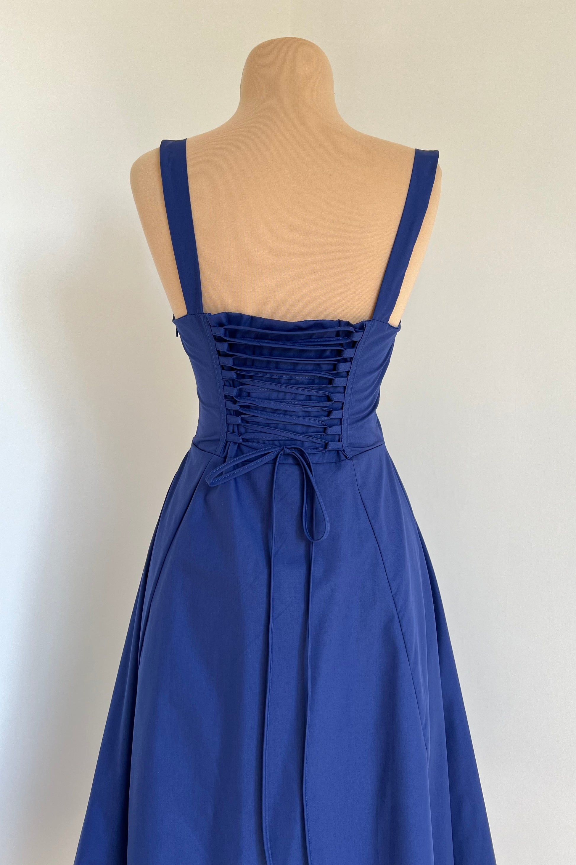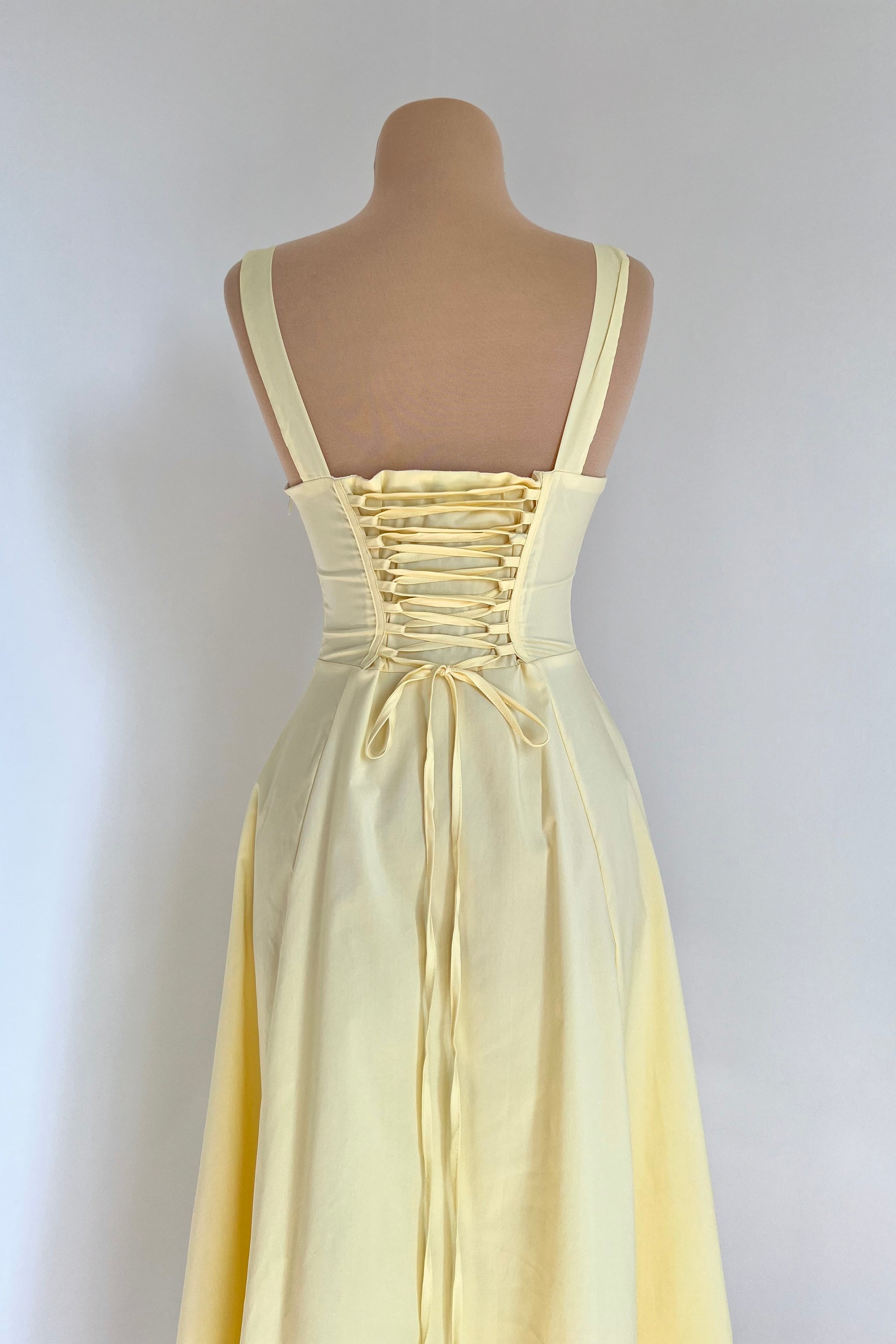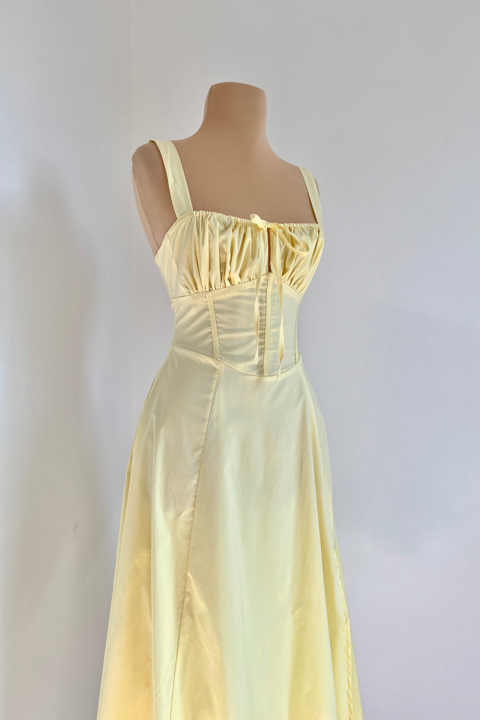 Midi dress with a corset and an adjustable chest detail.
